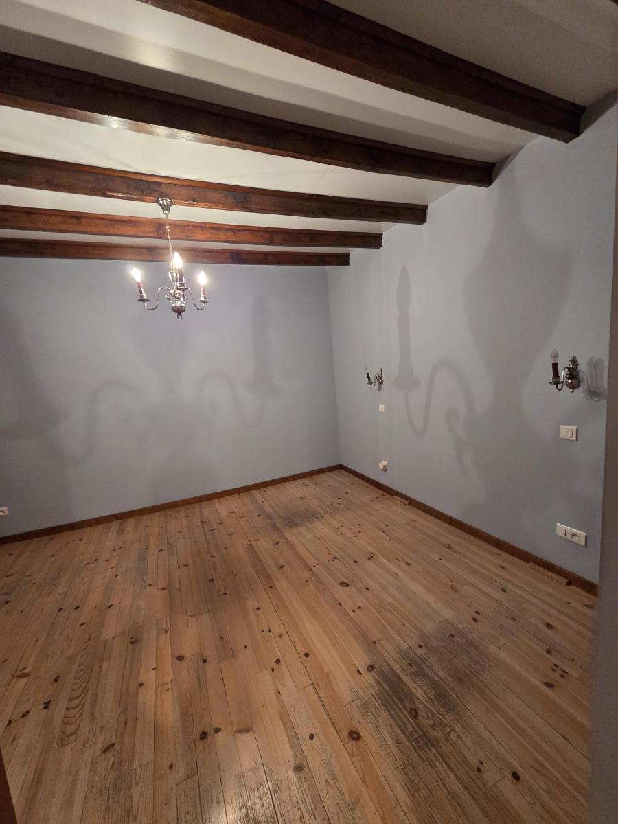 Chauffage électrique et agrément bois. On note du double vitrage et une bonne isolation (revêtement murs)
