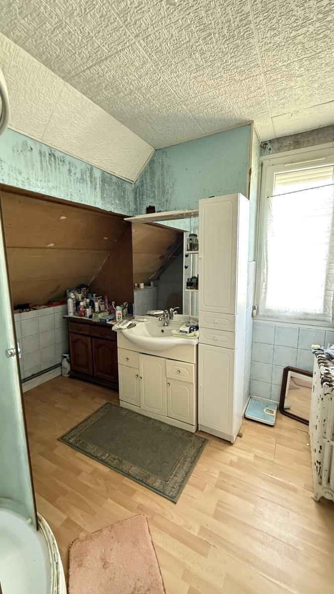 Une maison d'habitation de 90 m² environ comprenant au rez de chaussée salon, cuisine, salle à manger, wc. A l'étage 2 chambres, salle de douches/wc, placards.