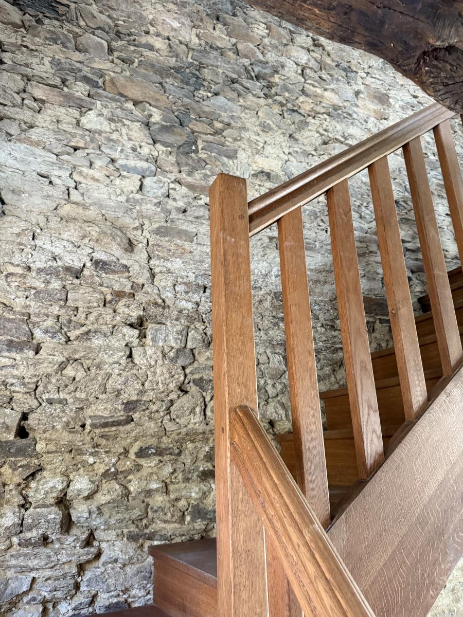 Belle longère en pierres sur agréable terrain au sud de 2414 m2, comprenant au rez-de-chaussée grande pièce à vivre d'environ 50 m2 avec coin cuisine, un espace buanderie, douche, lavabo, wc, grand salon d'environ 40 m2. A l'étage, deux pièces à aménager (déjà isolées, plaquées, alimentées en électricité, en ouvertures). Abri de jardin.