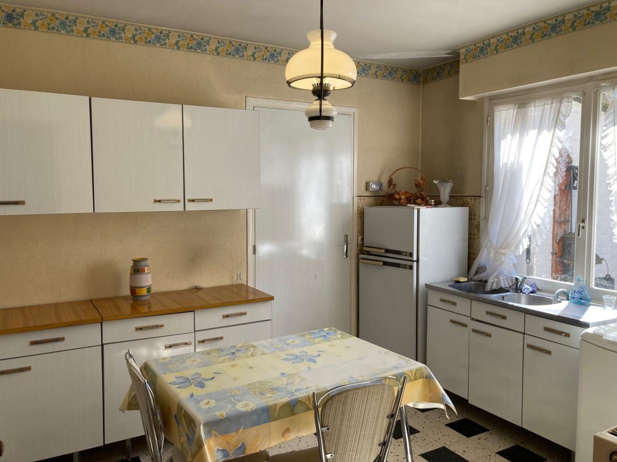 Maison en briques de 1971 composée d'une vaste entrée qui dessert un salon salle à manger, une cuisine spacieuse ainsi qu'une salle de bains. À l'étage un palier et 4 grandes chambres. Jardin entièrement clos, garage de 30m² et grenier. Chauffage gaz avec chaudière de 2024, toiture entièrement rénovée en 2017 et dalle béton à l'étage. Habitation située dans un lotissement calme, à 30m de l'école primaire et à 1 minute à pied du centre ville.