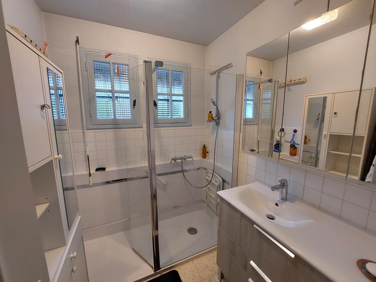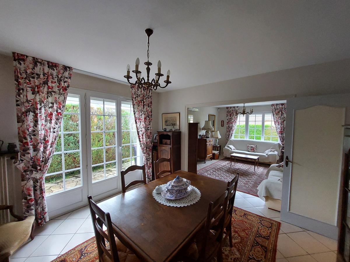 Au rez-de-chaussée : entrée, salle à manger, salon, dégagement, cuisine, salle d'eau, WC, trois chambres, placards.