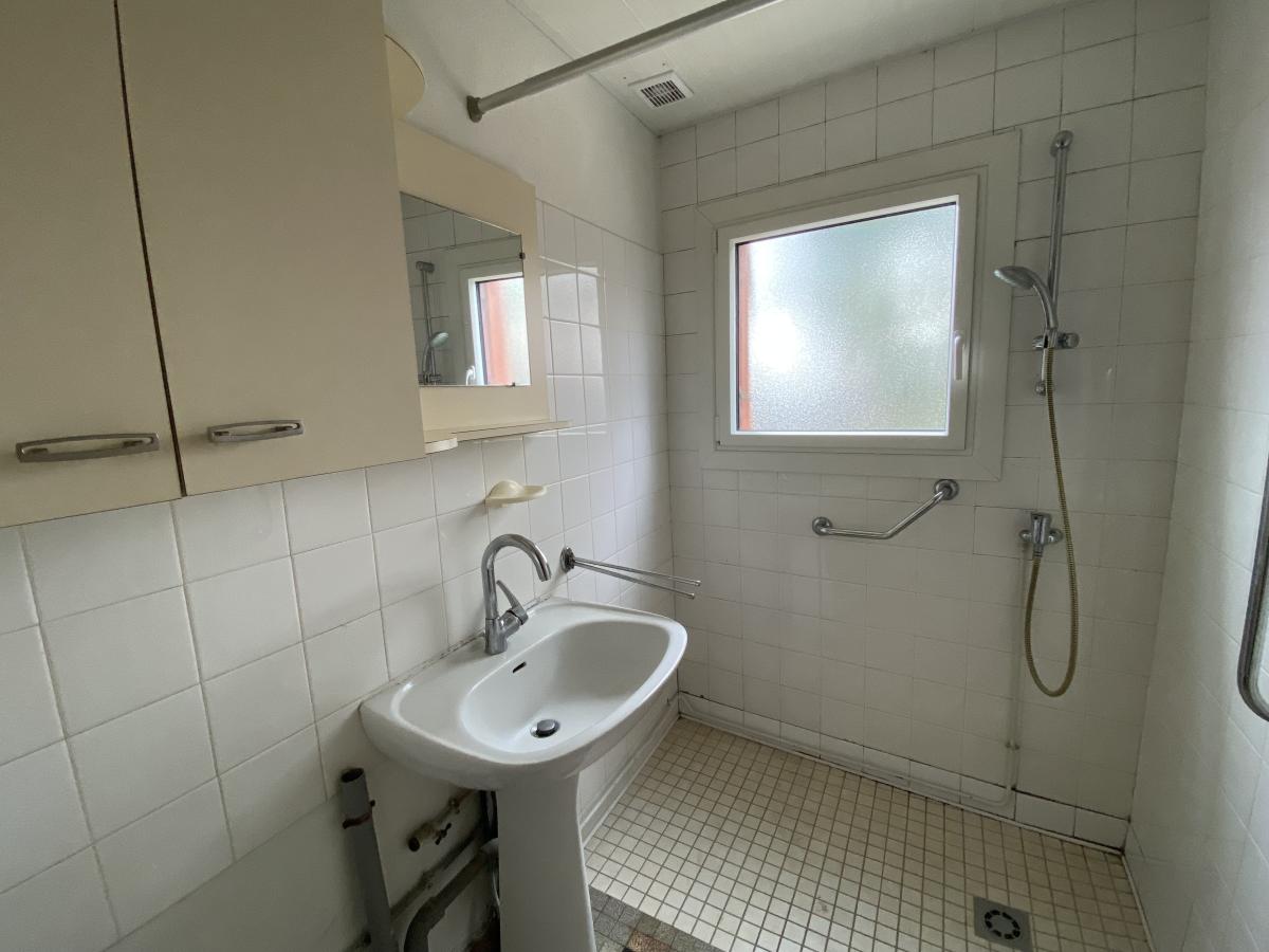 Une maison à usage d'habitation de plain-pied comprenant : une entrée, une pièce de vie, une cuisine aménagée et équipée (réfrigérateur, plaque de cuisson gaz et électrique, évier deux bacs), deux chambres, un débarras, une salle d'eau, un w.c., une chaufferie et un premier garage.