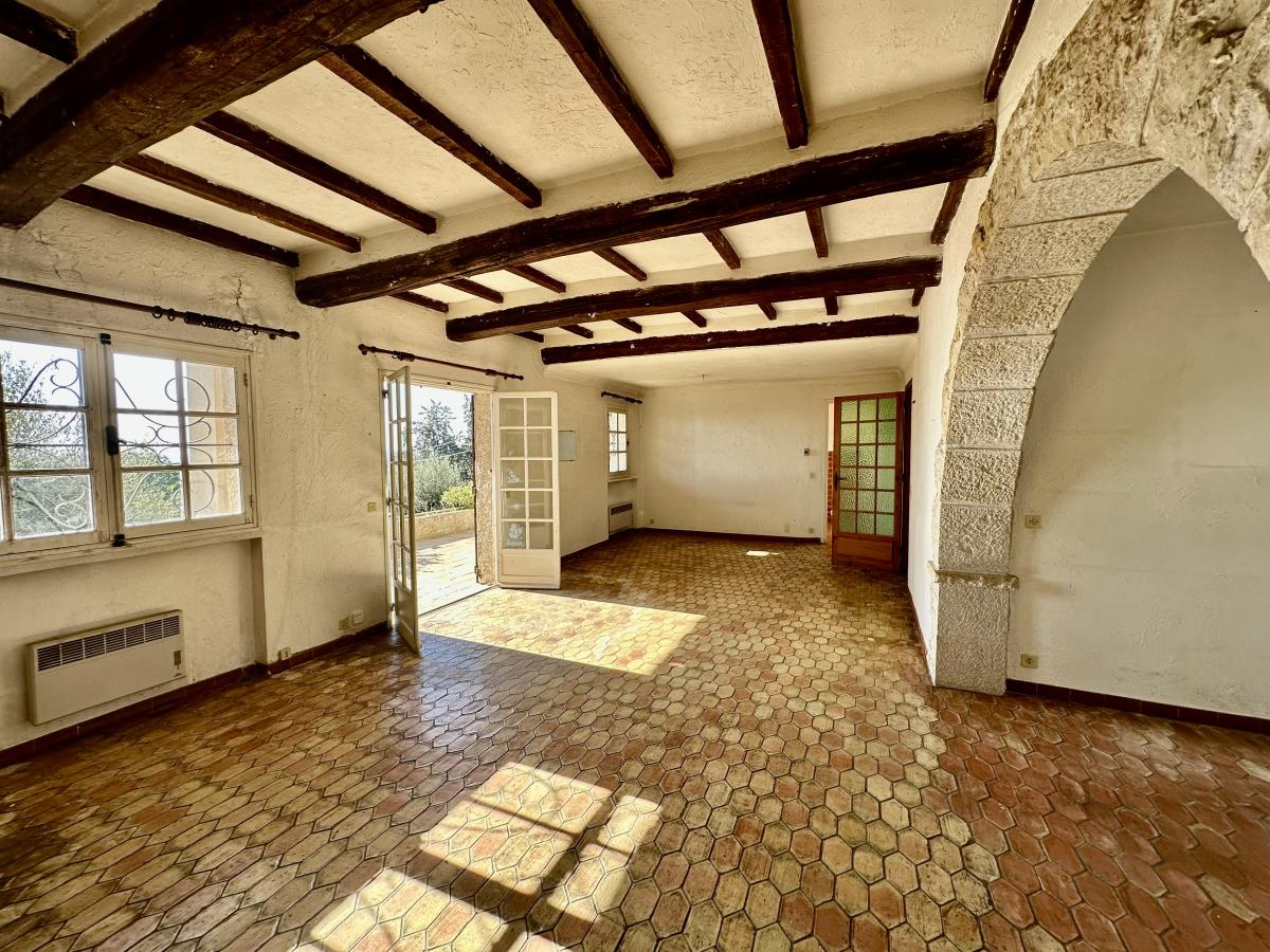 - A l'étage : Un hall d’entrée, une cuisine avec buanderie, un grand séjour avec cheminée donnant sur une grande terrasse avec vue mer, deux chambres,