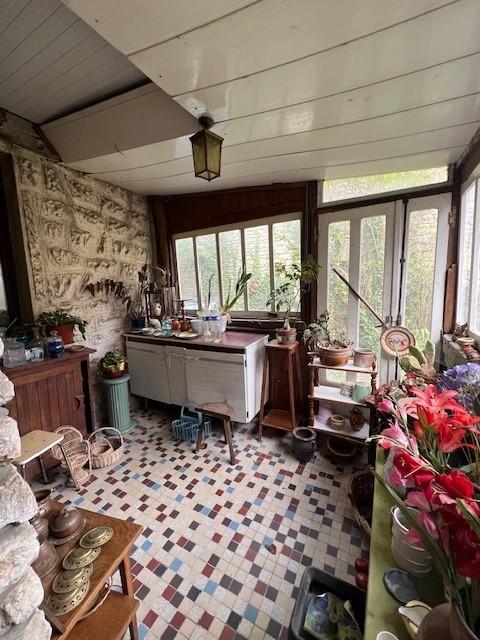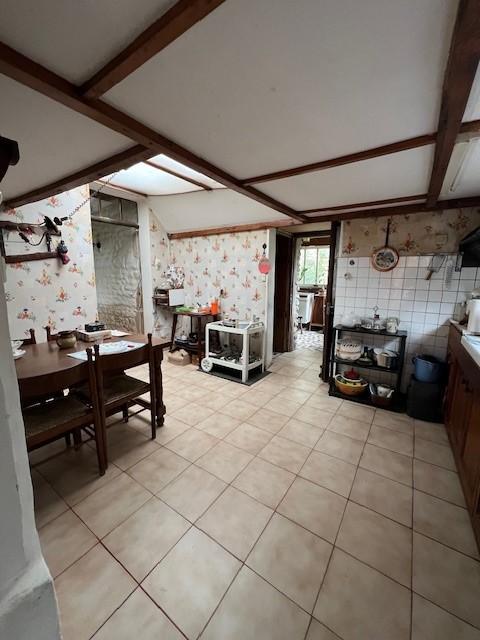 ERNES (14270) à environ 12 minutes de Mézidon Canon, maison ancienne en pierre comprenant au rez de chaussée : salle de séjour avec cheminée, salon, dégagement, cuisine, petit rangement, coin douche, wc séparé et véranda. Au 1er étage : palier desservant deux chambres. 2ème étage : grenier. S'ajoute une grande dépendance construite en pierre avec pressoir et grenier. Chalet en bois aménagé. Jardin d'environ 1567 m². Prévoir une enveloppe travaux. Pas de système de chauffage.