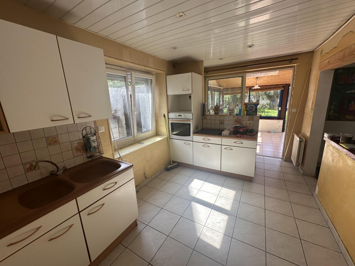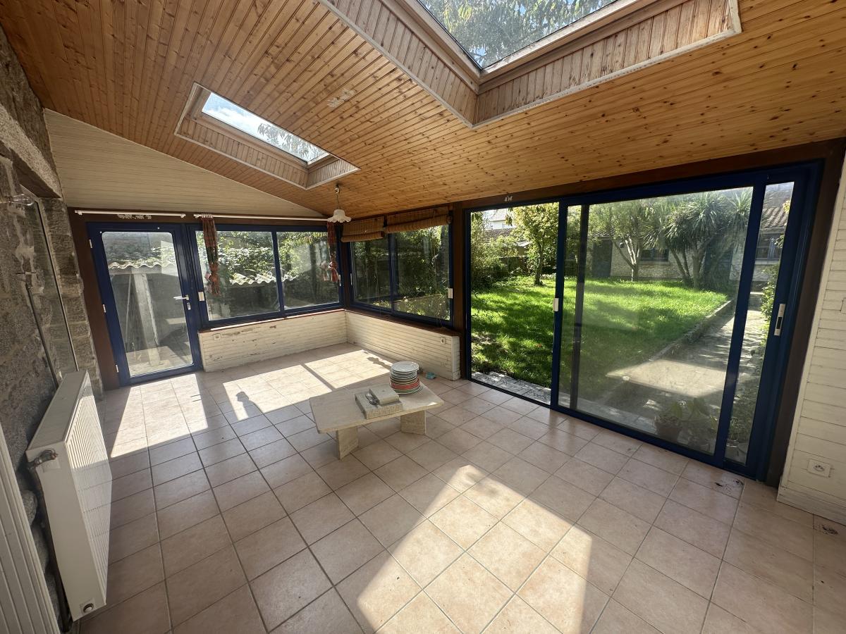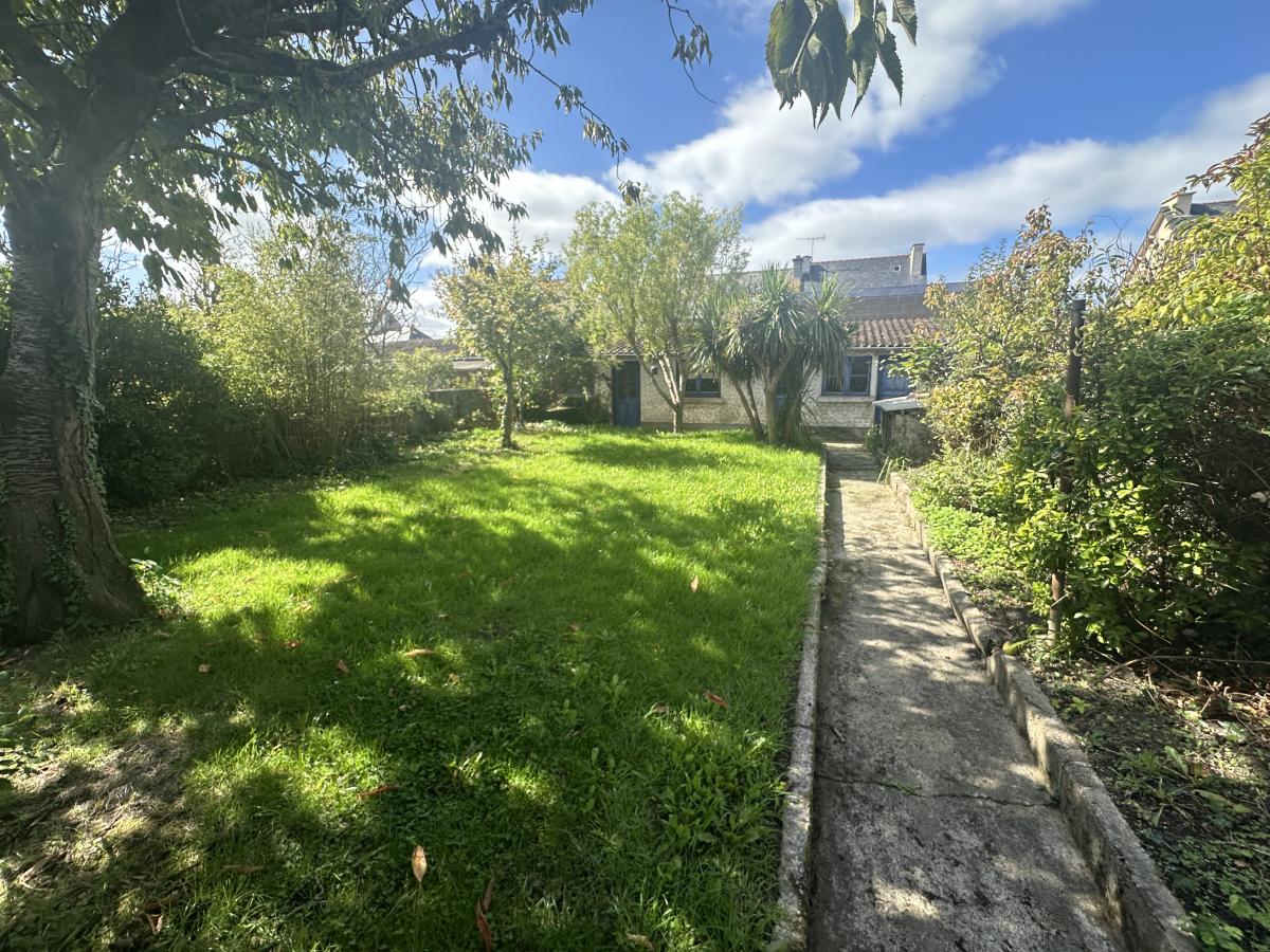SAINT MALO - Quartier Cottages, proche commerces et transports, maison en pierre couverte en ardoises comprenant au rez de chaussée une entrée desservant une salle d'eau, un wc, une pièce de vie traversante avec poêle à bois ouverte sur la cuisine, le tout donnant sur une véranda à l'Ouest. A l'étage, le palier distribue deux chambres, un bureau et une salle de bain avec wc. Grenier au dessus, jardin clos et arboré avec dépendance.