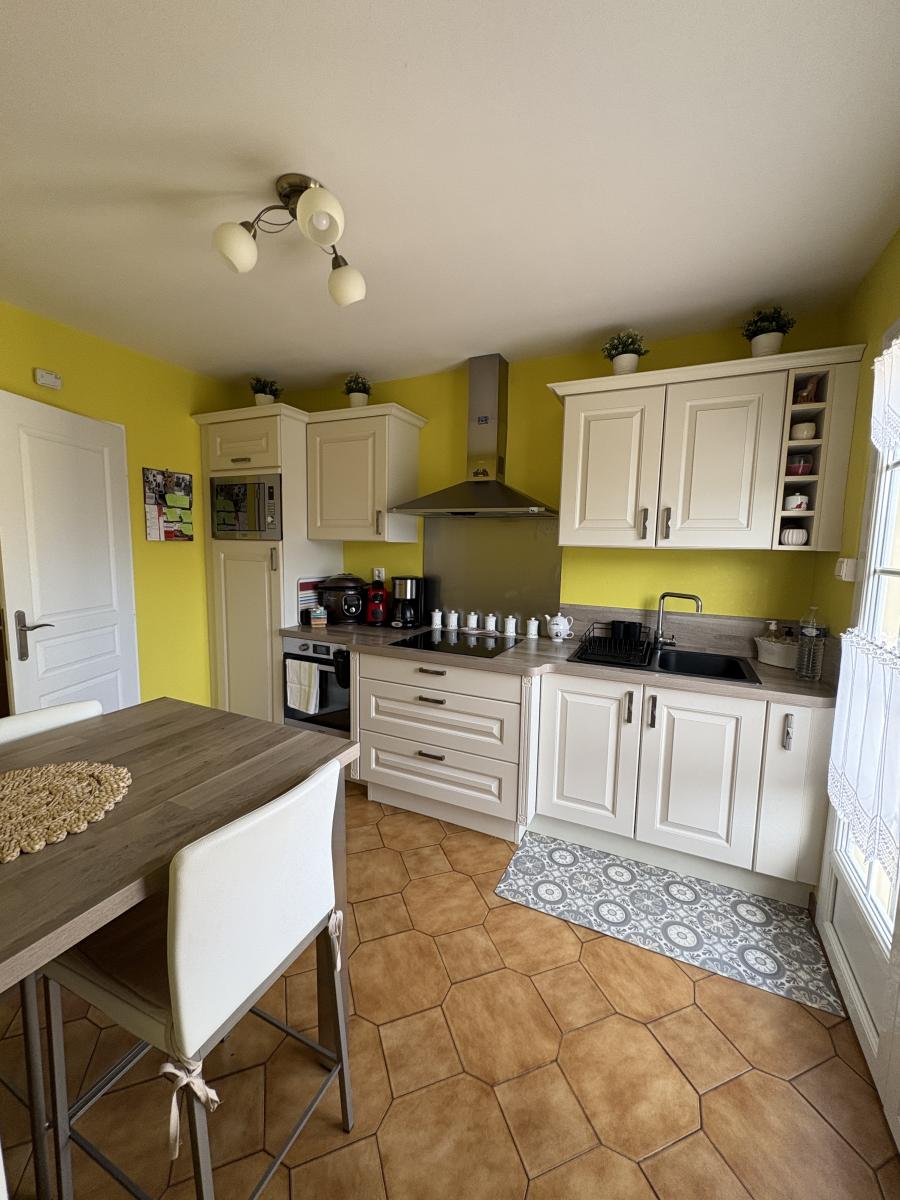 Située dans un secteur très prisé proche de tous commerces de bouche et idéal pour les adeptes de belles ballades dans des lieux bucoliques, ce pavillon offre tout le confort souhaité avec au rez de chaussée un hall d'entrée, un WC avec rangement - une belle pièce de vie salon et salle à manger très lumineux avec une cheminée feu de bois et un insert , une cuisine contemporaine équipée fermée avec un espace dinatoire et un accès directe à terrasse et au jardin. L'étage se compose d'un dégagement, d'une salle de bains, de 3 chambres dont une avec rangement et une traversante avec un dressing. Les menuiseries sont en pvc double vitrage. Ce bien comprend un garage 2 voitures avec une porte motorisée, un chauffage central au gaz, une cave en totalité, une belle terrasse carrelée et un vaste jardin clos planté et engazonné sans vis à vis.