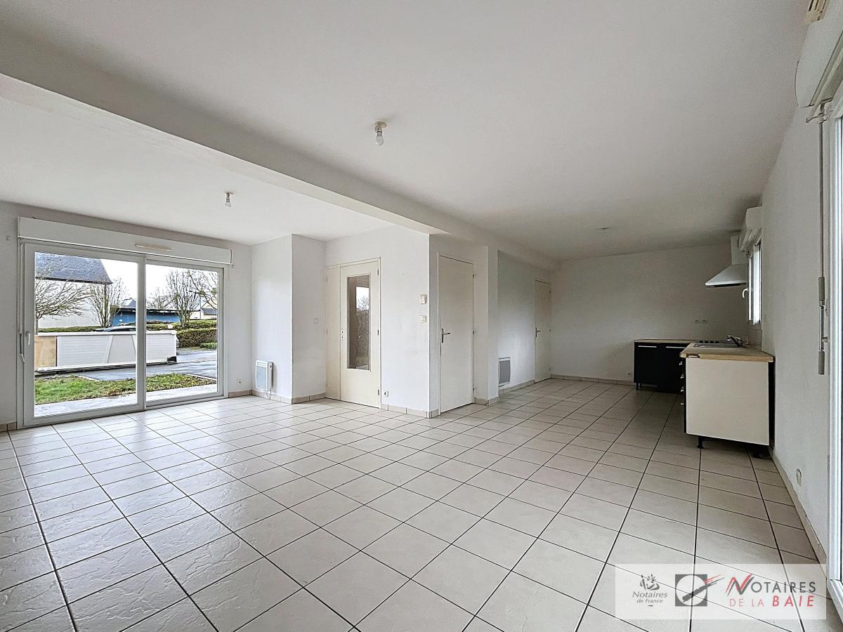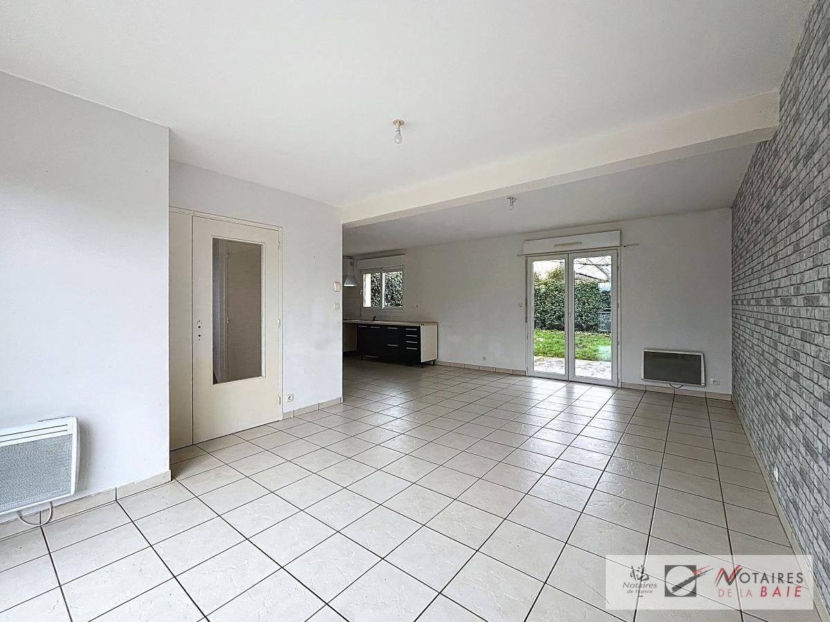 Sur la commune de TREGUEUX, une maison comprenant au rez-de-chaussée : entrée, séjour avec cuisine ouverte, arrière cuisine, garage et wc. A l’étage : palier, trois chambres, salle de bains avec wc. Jardin clos.