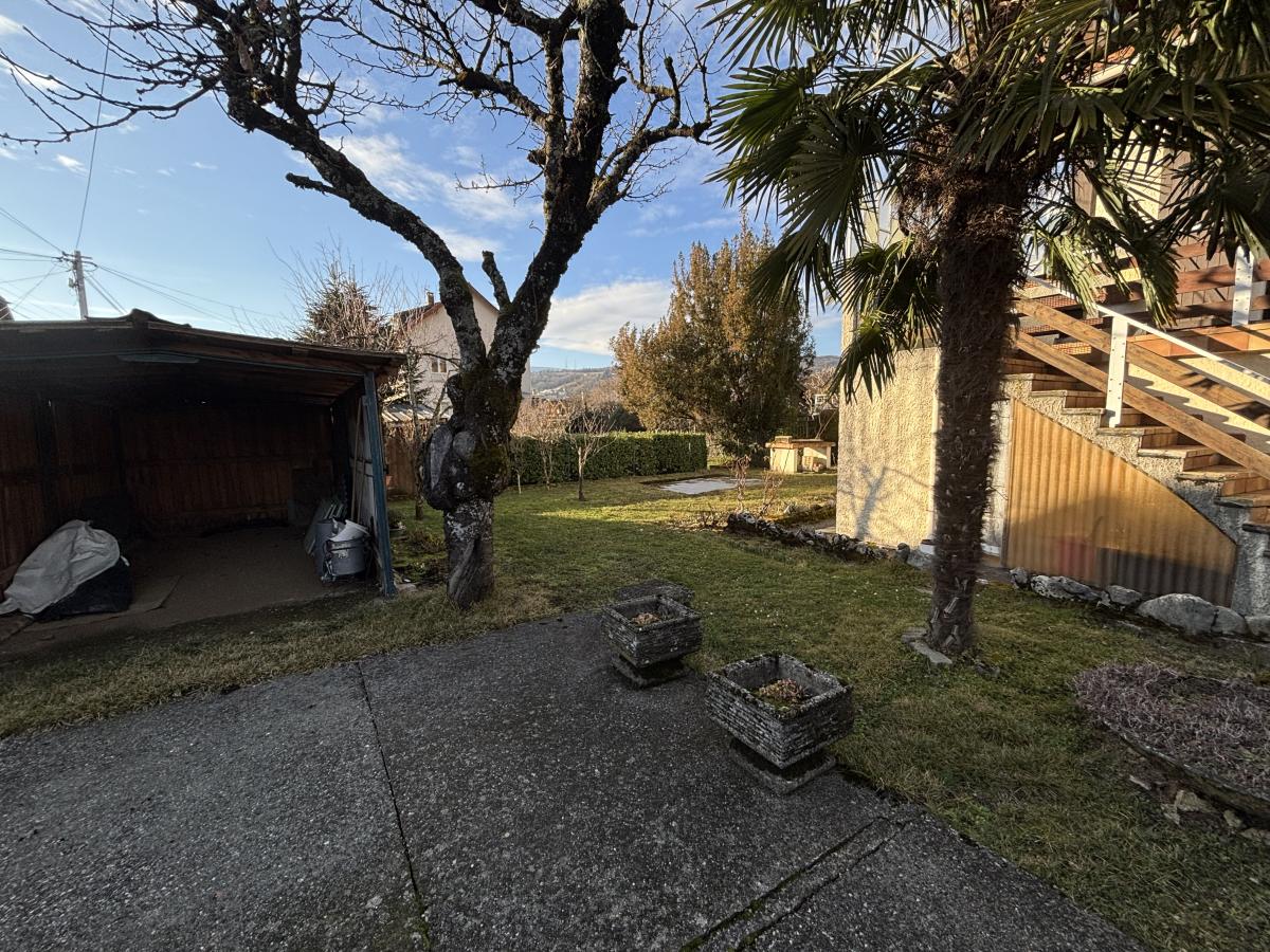 SAINT ALBAN LEYSSE, rue des Epinettes, en impasse sécurisée, sur une parcelle plate et close de 720 m², une maison de 1948 d'une surface habitable de 172 m², surface utile de 200 m², composée de trois niveaux : au rez-de-cour et jardin, entrée, cuisine, séjour, chambre et salle de bains/WC, au premier étage, cuisine, séjour double sur terrasse de 40 m², une chambre, salle de bains, WC, au deuxième étage, cinq pièces mansardées à terminer d'aménager. Secteur pavillonnaire calme, vue dégagée montagnes, exposition, lumière, à deux pas du centre-ville et de ses premières commodités. En dépendances : dans la maison, un garage, deux caves et une chaufferie. A l'extérieur, un petit bâtiment de 46 m² au sol, comprenant quatre volumes, et un carport simple.