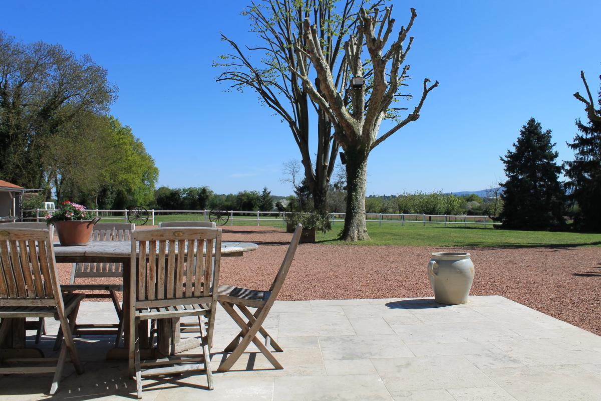 Maison de charme - vue dégagée, vaste terrain, dépendances, sur les hauteurs de Jassans-Riottier (Proche Saint-Didier-de-Formans).  Dans un environnement recherché, à la limite de Jassans-Riottier et Saint-Didier-de-Formans, découvrez cette maison de charme entièrement rénovée en 2010. Nichée sur un vaste terrain plat sans vis-à-vis, la propriété offre une vue dégagée sur la campagne environnante et bénéficie d'un cadre paisible à seulement quelques minutes de toutes les commodités. LA MAISON PRINCIPALE - Volume généreux et lumière naturelle Au rez-de-chaussée : - Une entrée accueillante de 9m² avec son bel escalier - Une cuisine indépendante de 27m², avec accès au cellier et une cave - Un séjour agréable de 26m² - un salon chaleureux de 32m² avec sa cheminée - Toilette A l'étage : - Deux belles chambres de 16m² et 20m² - Une suite parentale de 27m², avec sa salle d'eau privative et accès direct à une terrasse indépendante surplombant le jardin - une seconde salle d'eau - Toilette DEPENDANCES & EXTERIEURS- Un cadre de vie privilégié La propriété dispose de nombreuses dépendances qui viennent enrichir le confort et les possibilités d'aménagement: - Salle annexe servant de salle de jeux créée dans une partie des combles (à hauteur d'homme), à savoir que toute la surface restante peut encore être aménagée. - Très grand garage -cave- Atelier pour artisan, bricoleur ou artiste - Sellerie - Appentis pouvant accueillir 4 véhicules, stockage.... - Terrasse carrelée et spacieuse, le tout s'ouvre sur une cour intérieure accueillante et son grand terrain ainsi qu'un petit verger, idéal pour profiter de la nature, accueillir des animaux ou encore développer un projet, créer son potager et envisager un espace piscine. Idéale pour les amoureux des grands espaces, de la tranquillité et des animaux (chevaux, chiens, basse-cour..). Localisation idéale : A seulement quelques minutes de Villefranche-sur-Saône, avec un accès rapide à l'autoroute et à la gare, la maison bénéficie d'un parfait équilibre entre calme champêtre et proximité des infrastructures. Lyon est accessible en 30 minutes. Une propriété offrant un cadre de vie privilégié pour les familles, les porteurs de projet (gîte, accueil..) ou les passionnés de vie au vert.