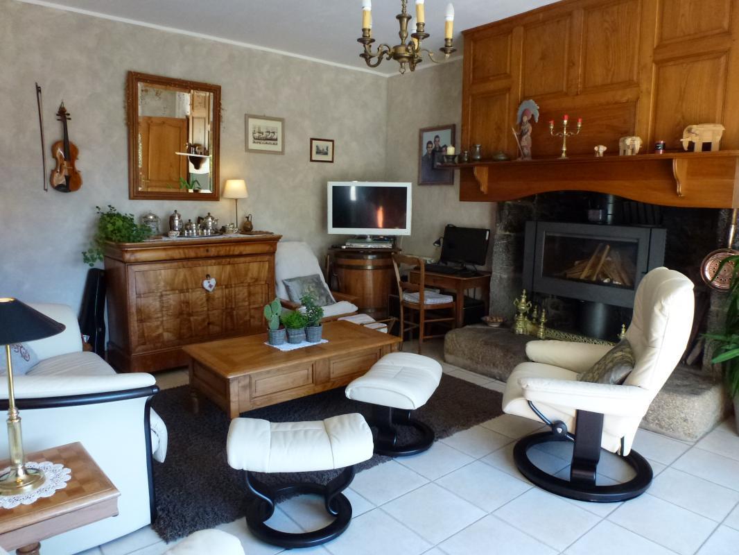 Au rez-de-chaussée : entrée, wc, cuisine aménagée et équipée, salon avec poêle, salle à manger avec cheminée, une chambre, une salle d'eau avec wc.