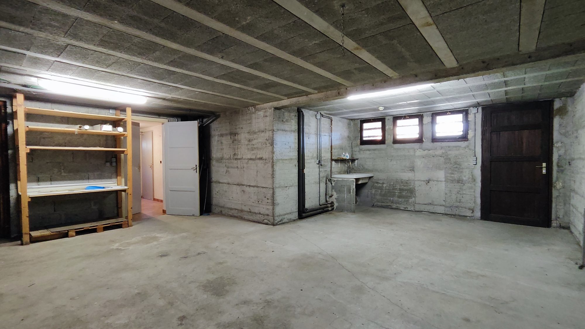 Un sous-sol complet avec cave de 41m² et un grand garage de 23m² avec porte automatique apportent des solutions de rangement appréciables et sécurisées.