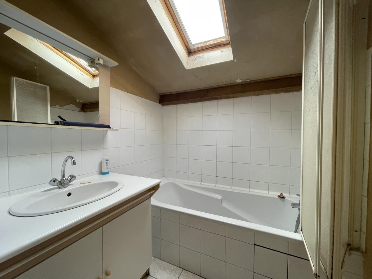 - A l'étage, le logement principal composé d'un séjour, d'une cuisine indépendante, de trois chambres, une salle d'eau avec WC puis au second niveau quatre chambres mansardées (velux et fenestrons), une salle de bains et un WC.