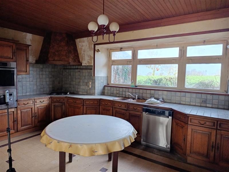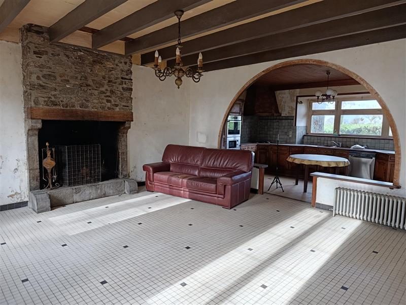 Au rez-de-chaussée: entrée desservant salle à manger / cuisine ouverte avec cheminée, salon (45 m²), salle d'eau avec WC, chaufferie.