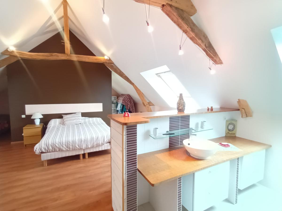 Entrée avec placards, pièce de vie de 63 m², cuisine entièrement aménagée et équipée, chambre de plain-pied de 27 m²avec sa salle de bains et douche, trois autres grandes chambres à l'étage dont une avec salle d'eau, wc et dressing privatif, salle d'eau avec wc, bureau.