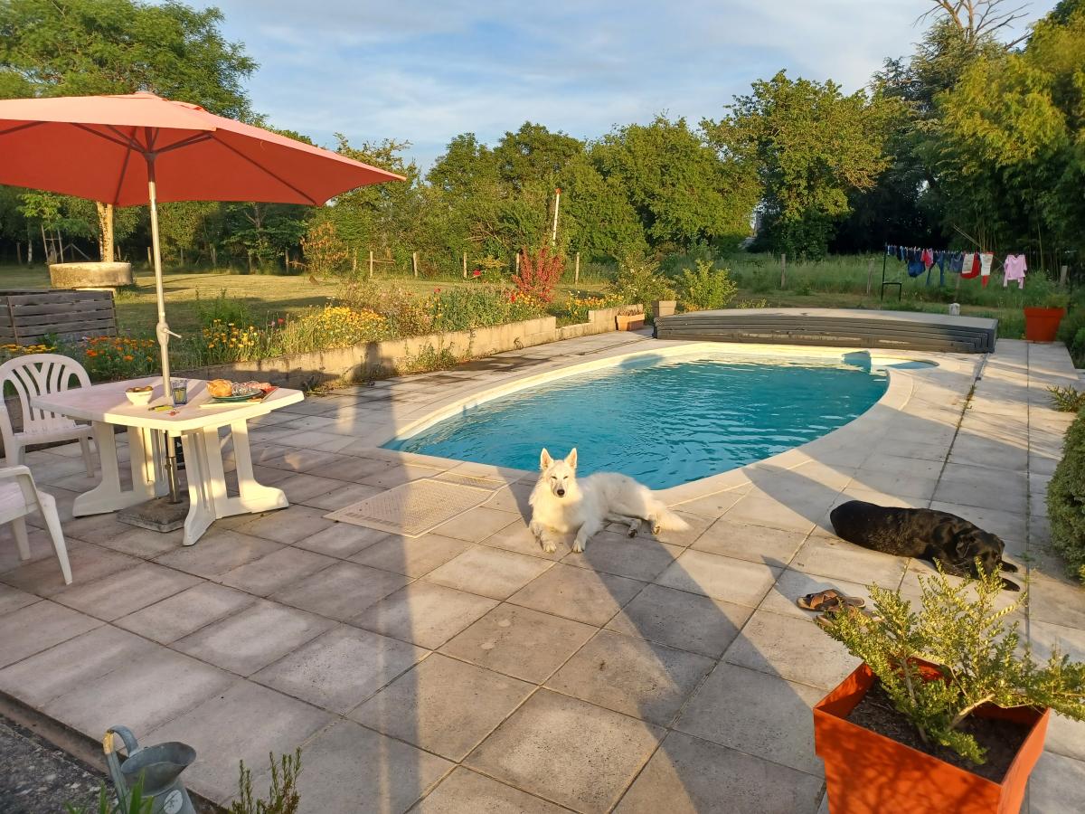 Beau terrain avec piscine et dépendances en parfait état comprenant garage, abri voiture, ancien atelier de 72 m² avec bureau.