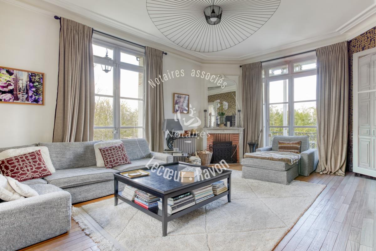 En rez-de-jardin, un magnifique hall d'entrée avec carreaux de ciment, un salon en angle, très lumineux, avec cheminée, ouvert sur terrasse et balcon (3,25m de hauteur sous plafond), une salle à manger pouvant accueillir de nombreux convives, une cuisine dinatoire haut de gamme avec cheminée fonctionnelle, une buanderie attenante et des toilettes invités.