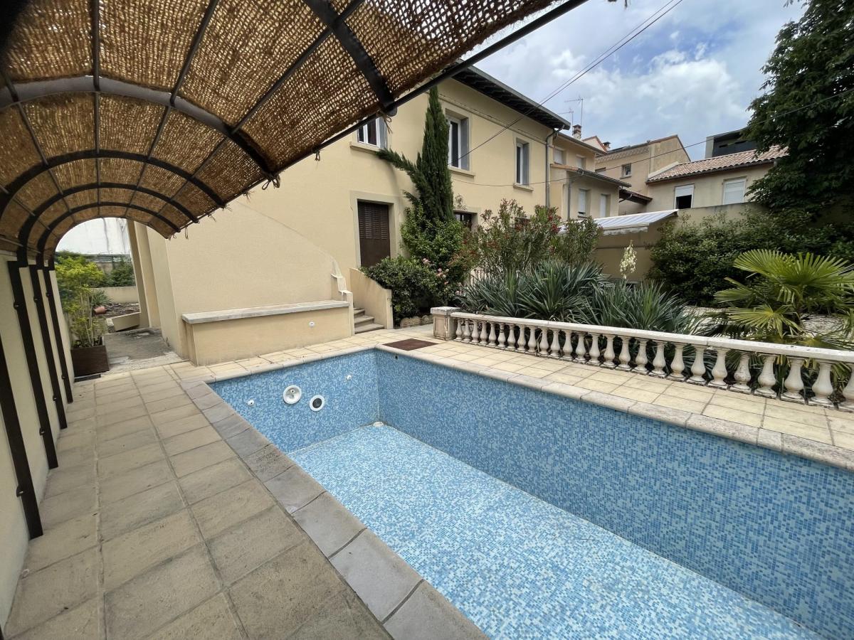 VALENCE centre ville, à 2 pas de la Place Danton, dans un superbe emplacement, agréable maison bourgeoise de 300m2 habitables avec jardin, parkings, piscine et des annexes à rénover pour investissement locatif ou professionnel. La maison principale vous offre de magnifique volume, avec deux belles pièces de vie, un bureau, une grande cuisine équipée, indépendante, au 1èr étage 4 chambres, 2 salles de bains, 1 salle d'eau, au 2ème étage une salle de jeux, un dortoir, dressings. Chaufferie et caves en sous-sol.Une dépendance comprenant un ancien commerce donnant sur l'Avenue Victor Hugo, avec un appartement à l'étage à rénover entièrement, et une seconde annexe, ancien logement vétuste à rénover.