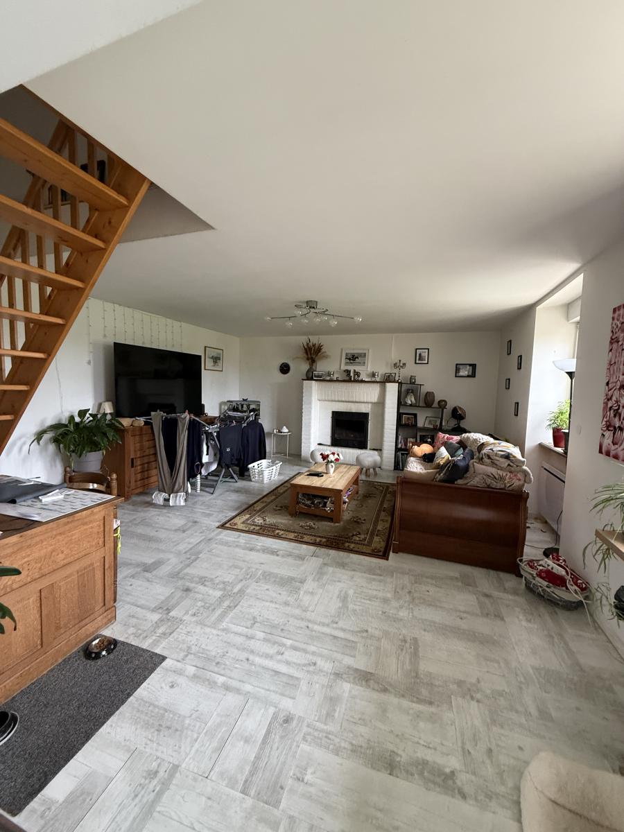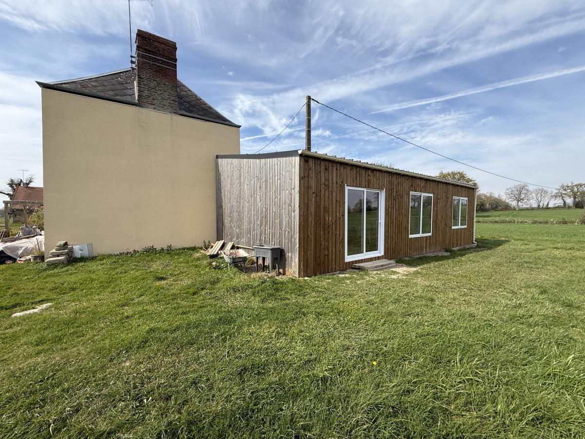 Une maison louée comprenant au rez de chaussée, pièce de vie avec cheminée insert, cuisine aménagée, une chambre, une salle d’eau avec wc.