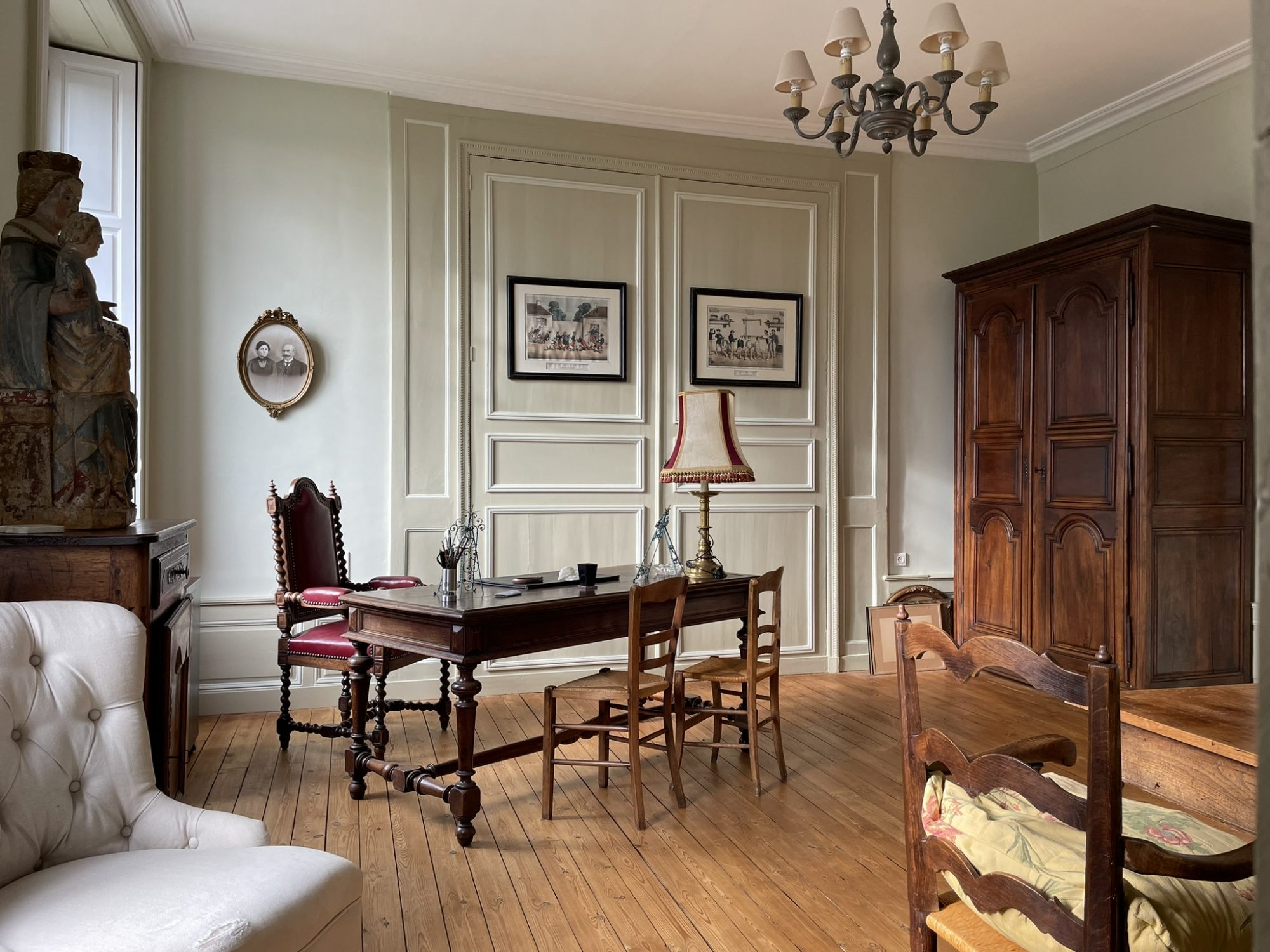 Magnifique propriété du 18ème siècle au cœur de la ville de MORTAGNE AU PERCHE, entièrement rénovée. Grand et lumineux espace de vie avec cuisine aménagée ouverte sur salon avec cheminée et grand séjour, cinq chambres (dont une de plain-pied avec salle d'eau/WC), bureau, salle de bains, salle d'eau, buanderie, réserve, WC. Potentiel avec grenier sur l'ensemble. Cave voutée. Dépendance à usage de garage avec grenier. Cour pavée devant et jardin clos de murs sur l'arrière.
