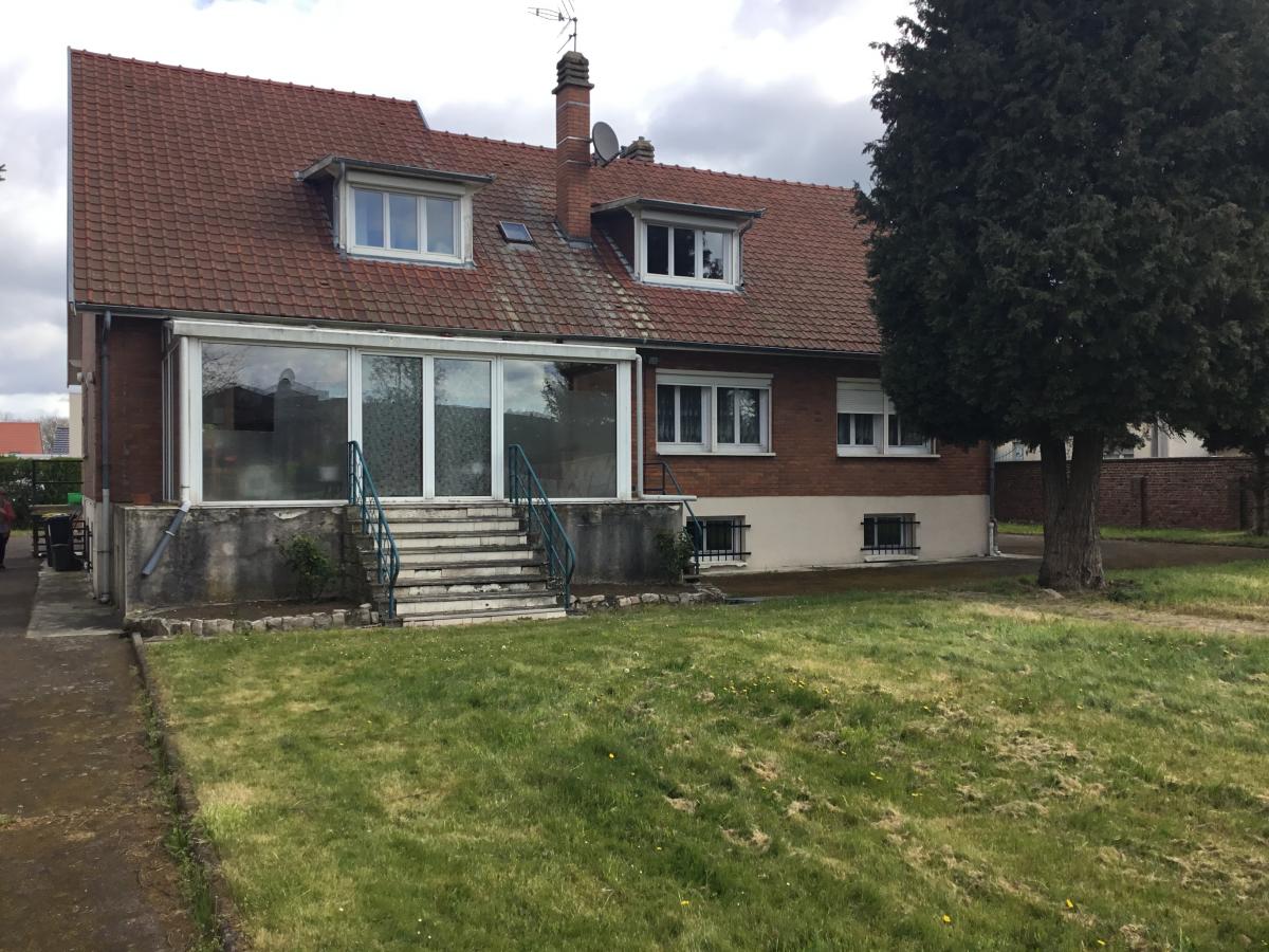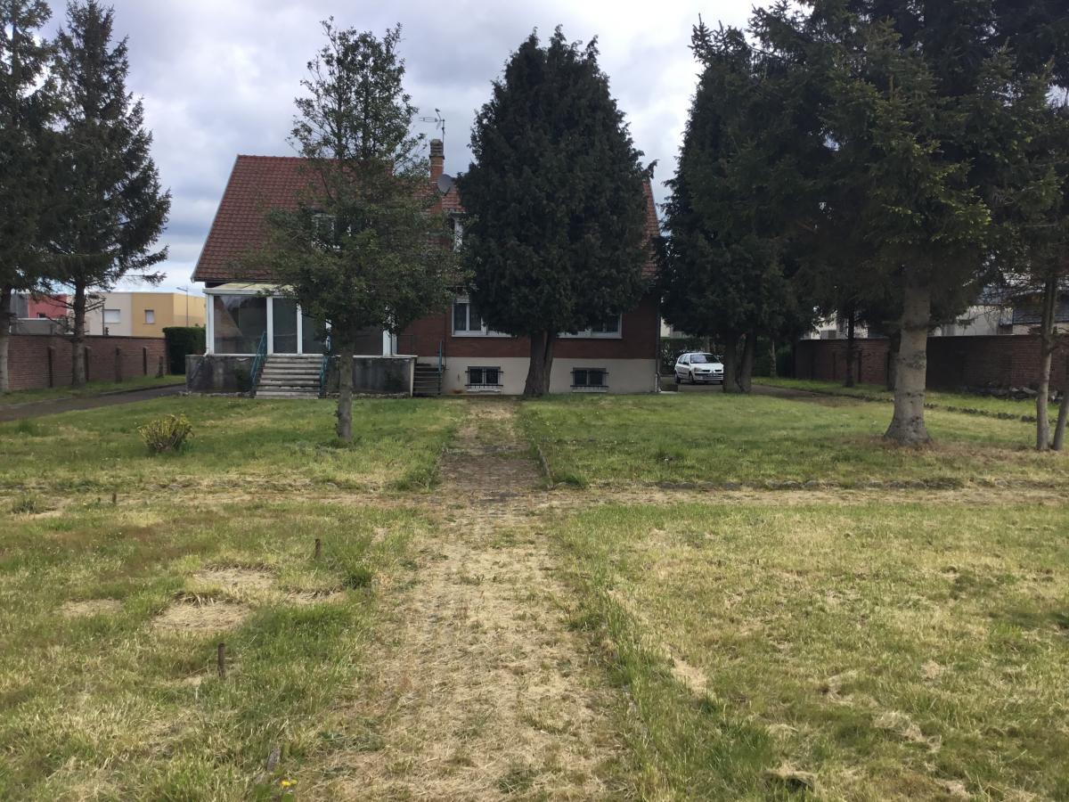 Auberchicourt, pavillon individuel bâti sur 3224 m² sur sous sol complet comprenant hall, salon, séjour, cuisine et véranda, 4 chambres, salle de bains au 1er étage 4 chambres, salle de bains, salle d'eau, grenier.