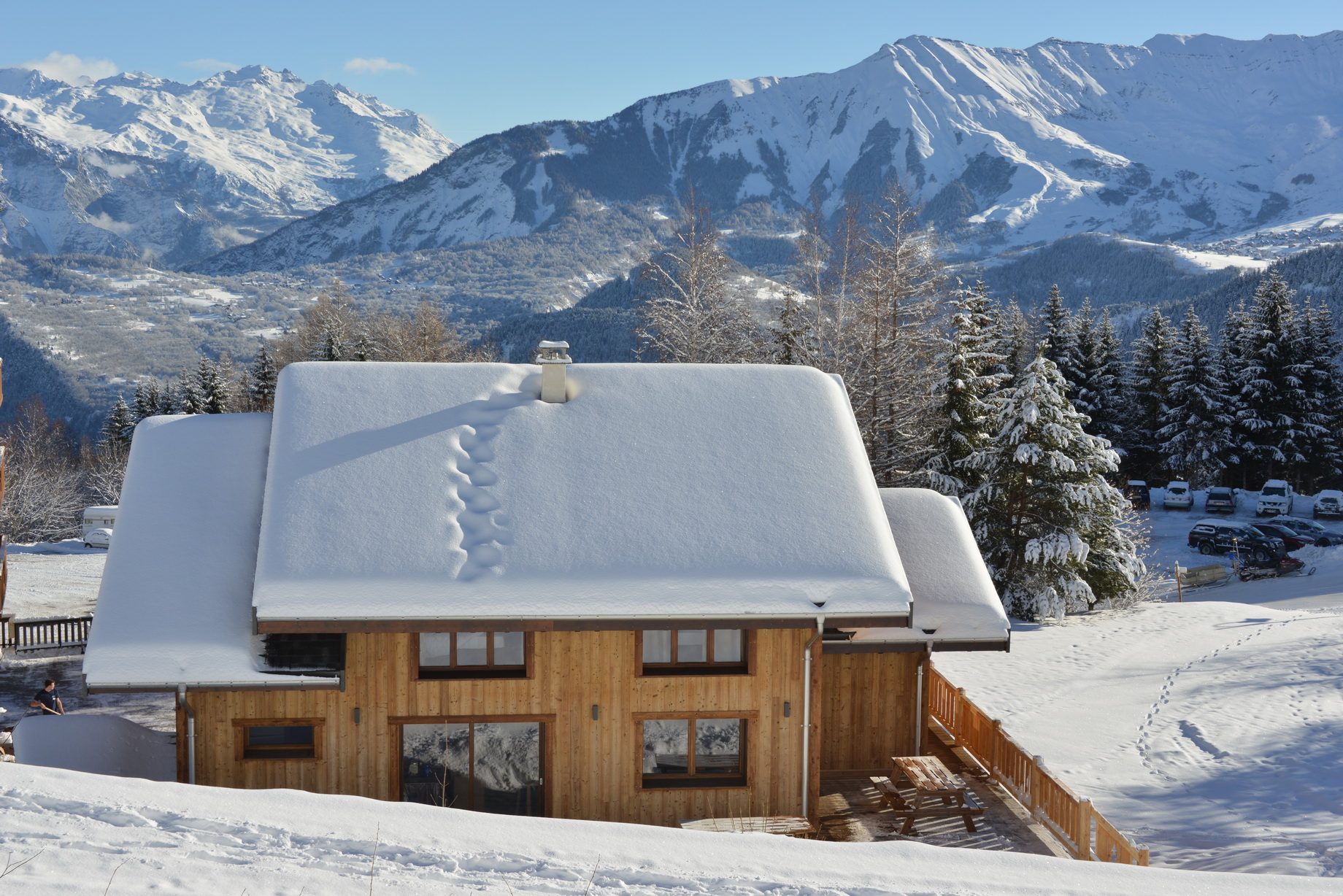 Le parking privatif est situé devant la porte du chalet.