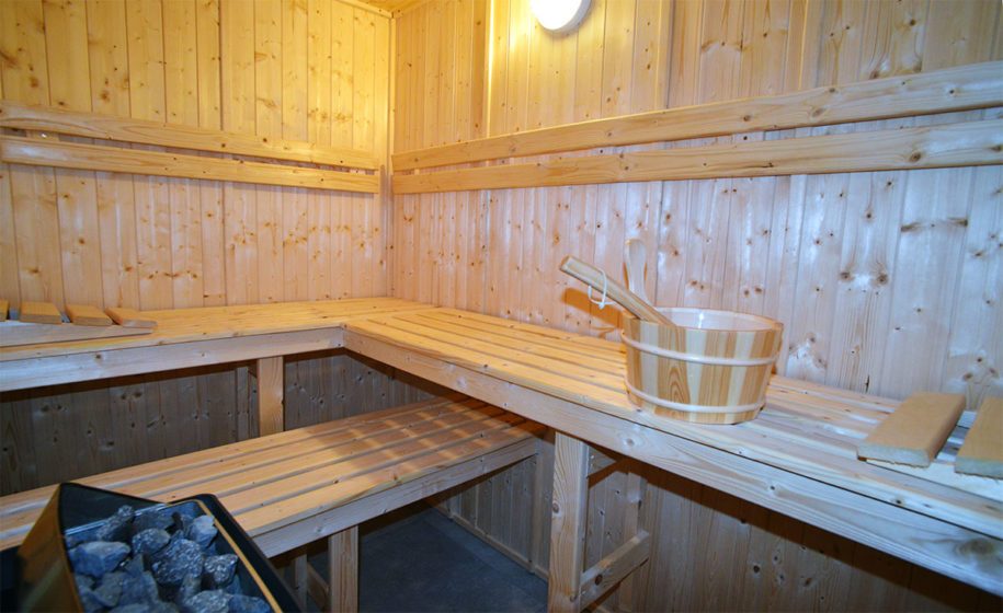 La salle détente - balnéothérapie dispose de grandes baies vitrées, d'un jacuzzi avec nage à contre courant, d'un sauna, d'une douche et d'une terrasse plein sud.