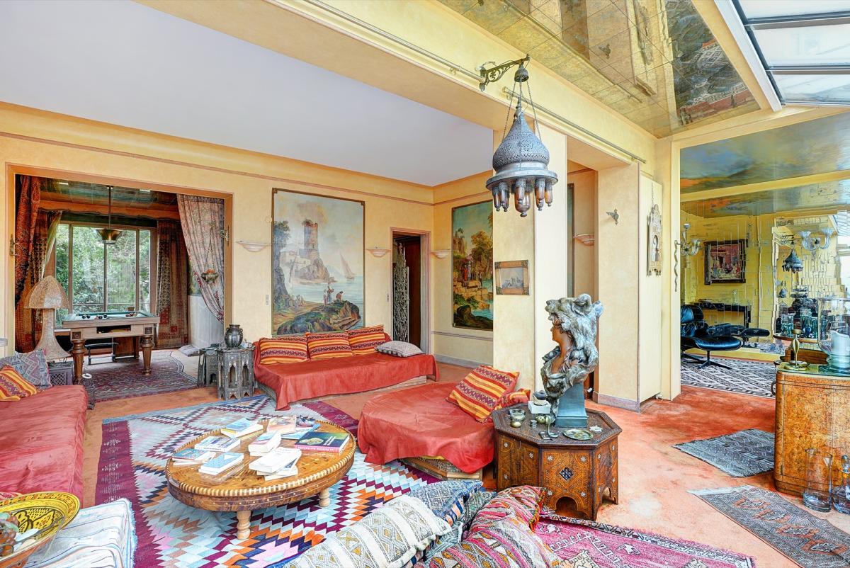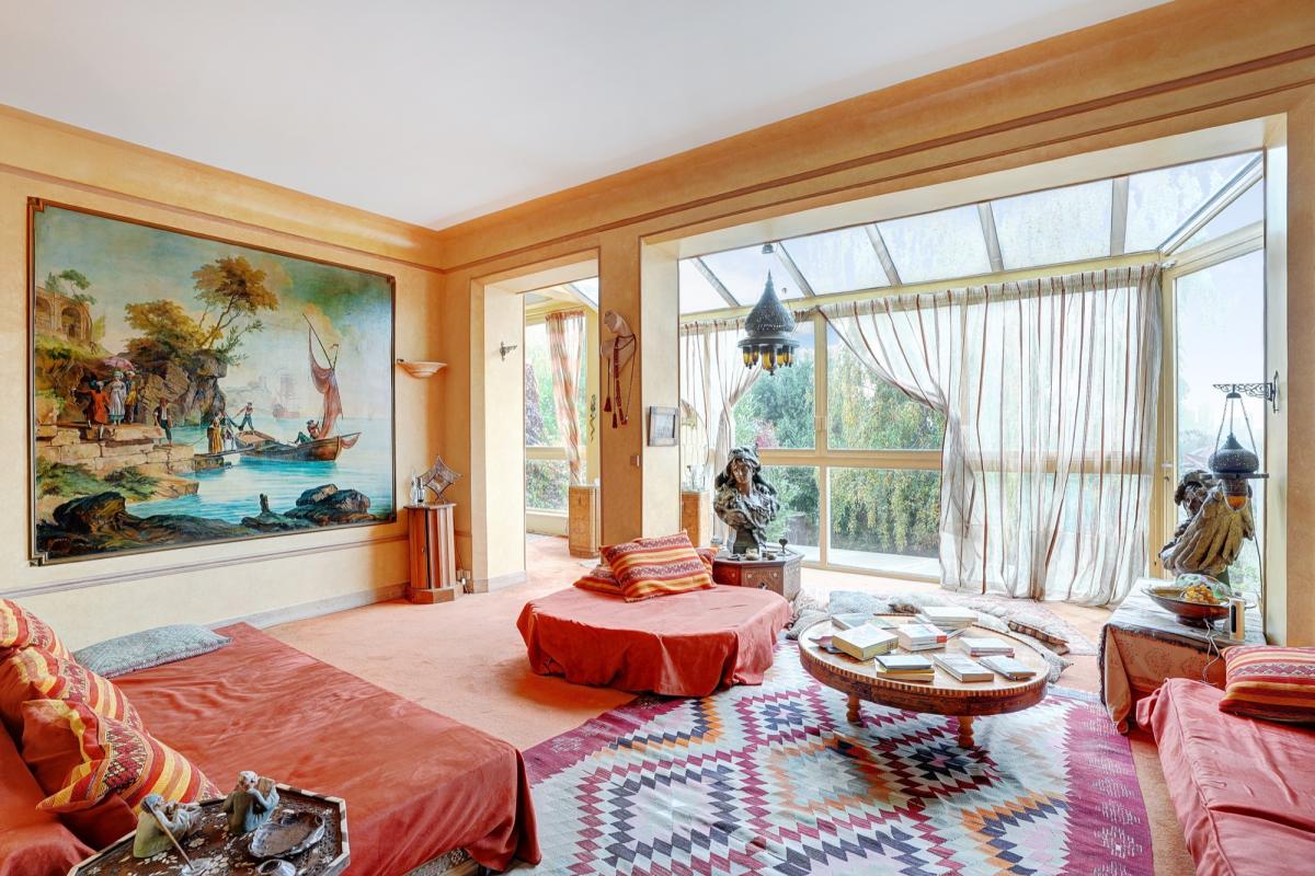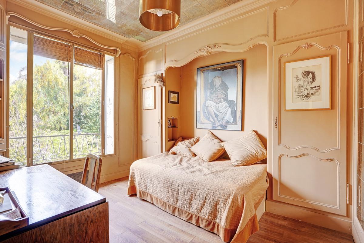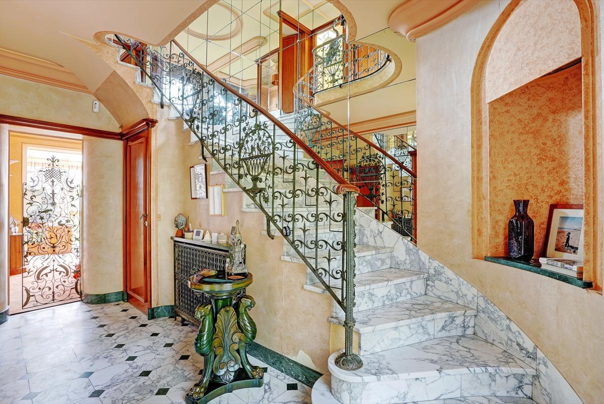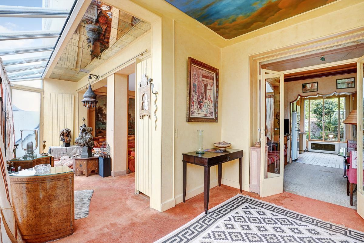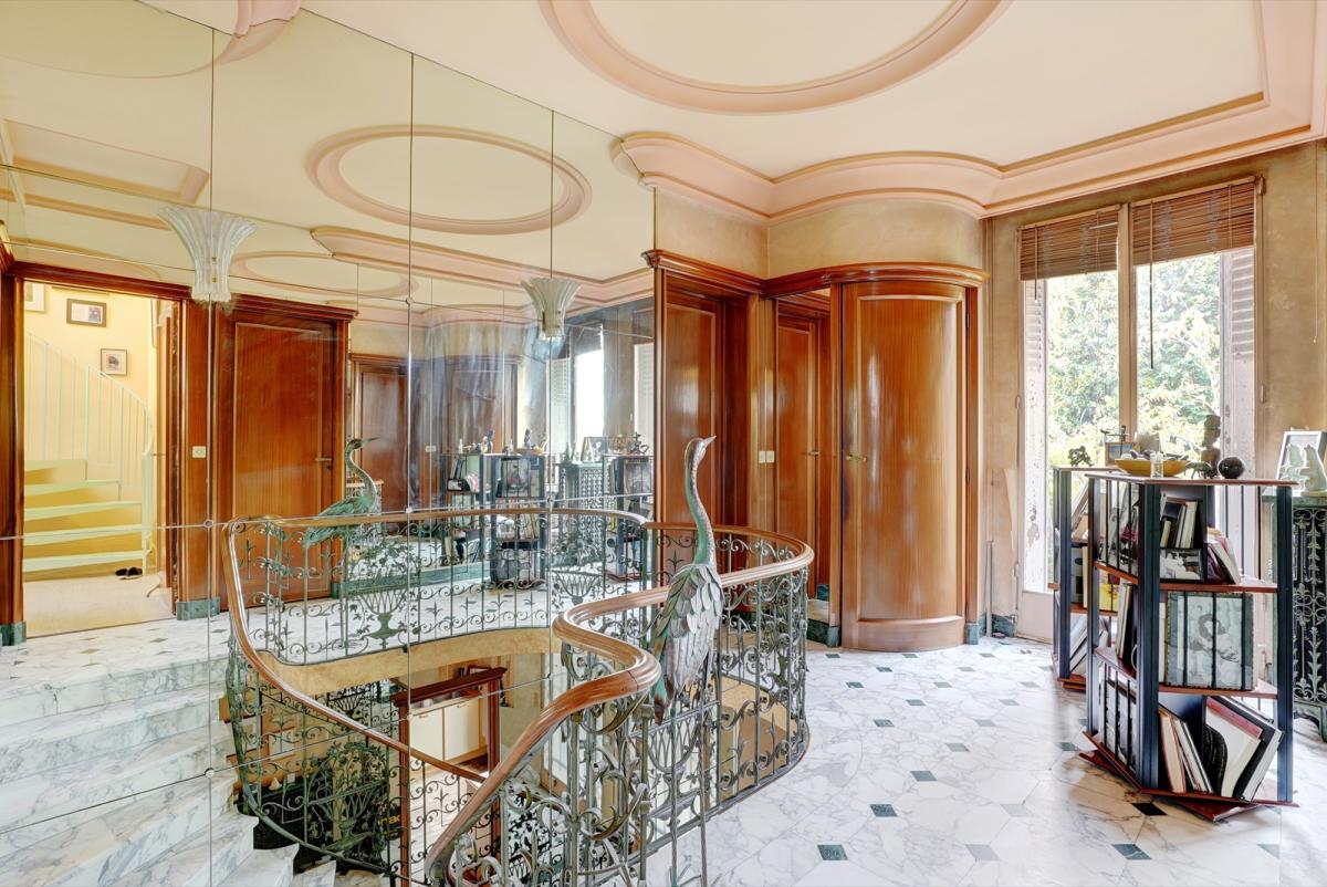 11 pièces, très lumineux, 2 entrées possibles, éléments de décoration remarquables (ferronneries, boiseries, fresques murales, marbre), pas de vis-à-vis, très calme.