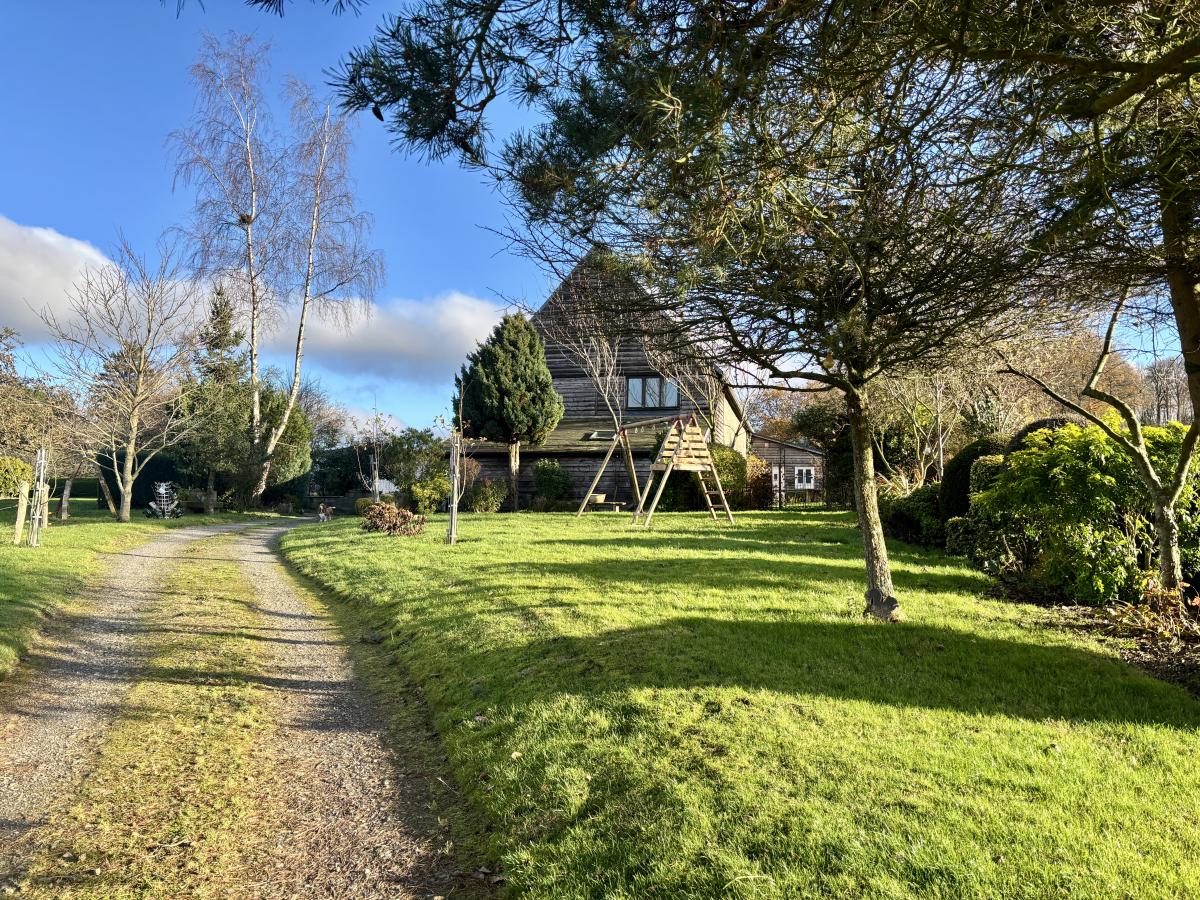 L’ensemble est implanté sur un joli terrain arboré de 3 193 m², offrant calme et cadre verdoyant à seulement quelques minutes de Vire et du lac.