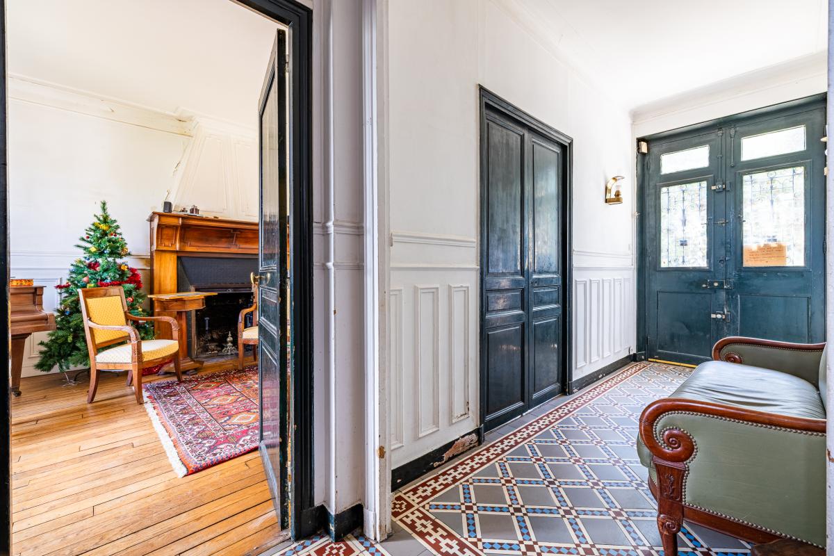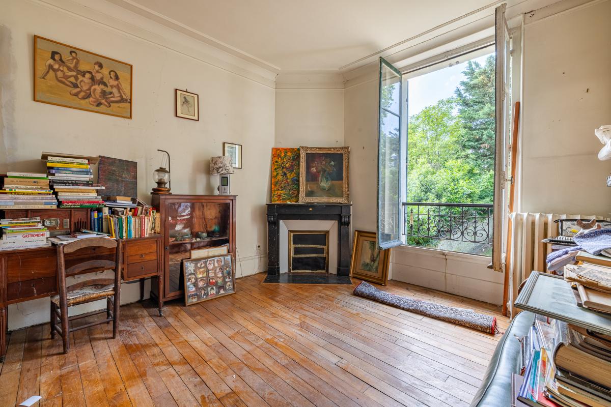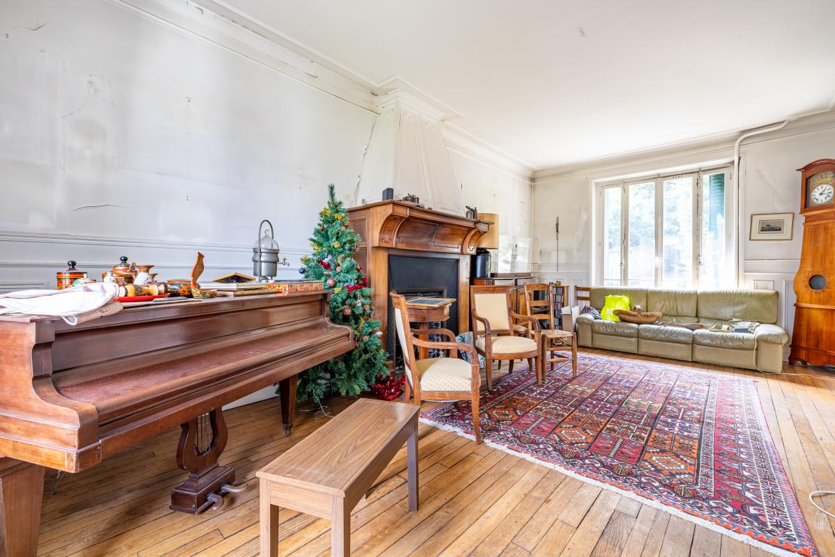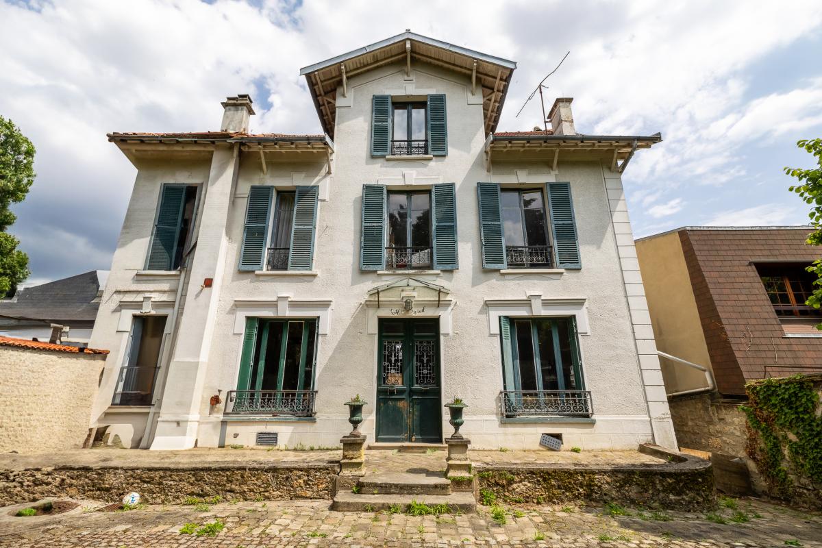 A 200 mètres du RER, une maison et une dépendance mitoyenne formant un ensemble de 350m² composé de 11 pièces sur un terrain de 615m².
