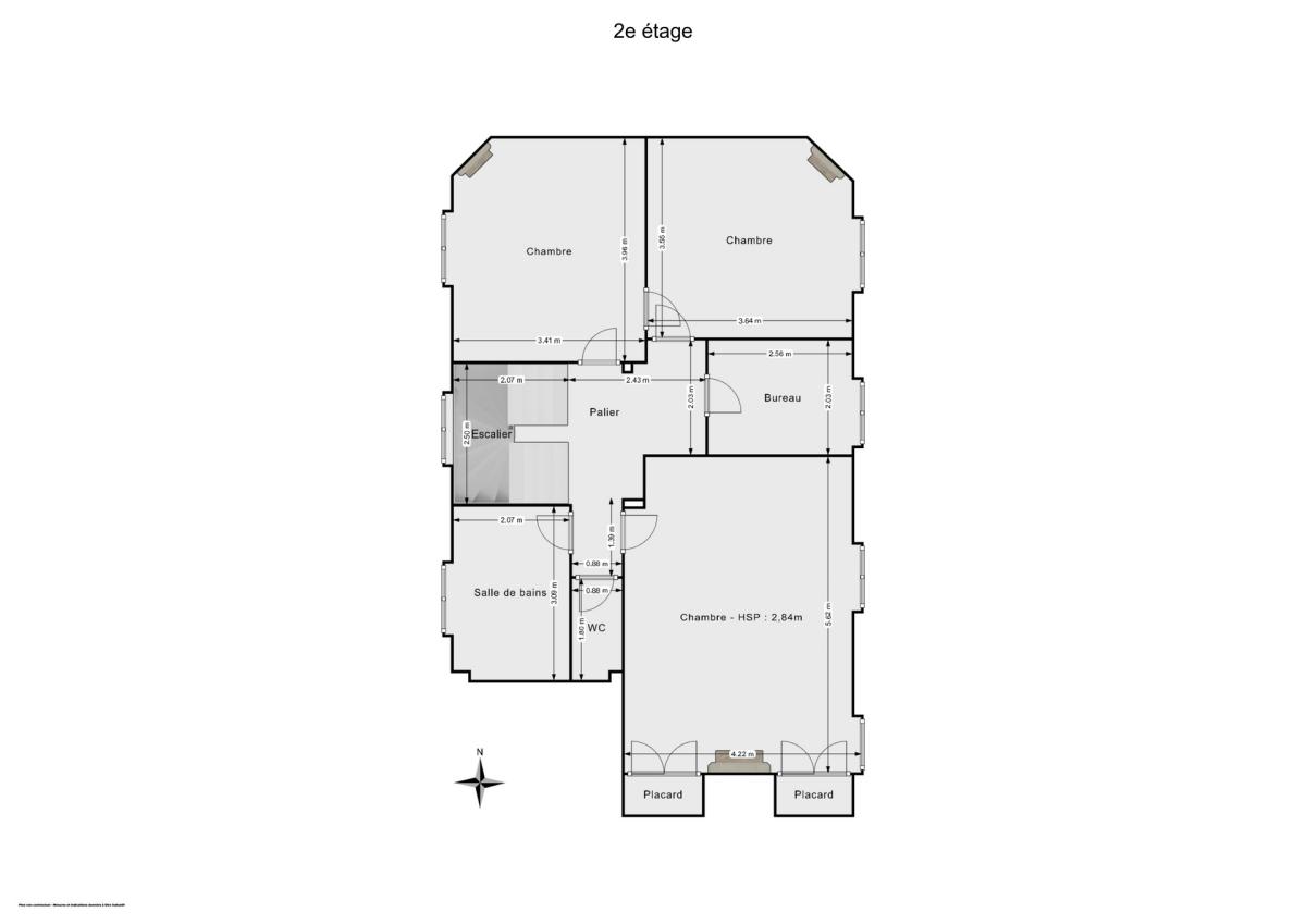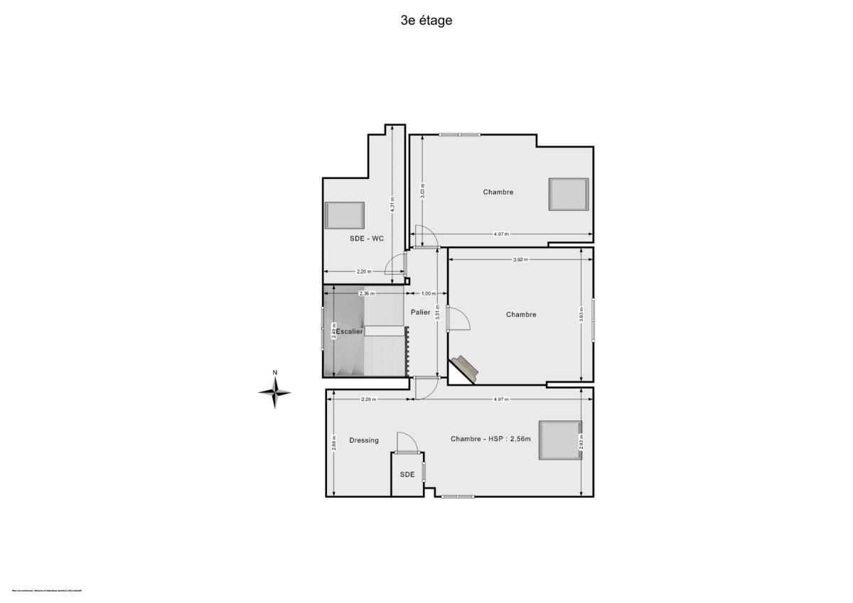 - Au 2ème 3 chambres, 2 salles de bains et un wc