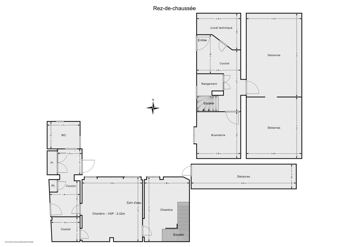 - Au sous-sol/RDC côté cour 2 débarras, une buanderie et un local chaufferie accessibles par une cour d'environ 100m²