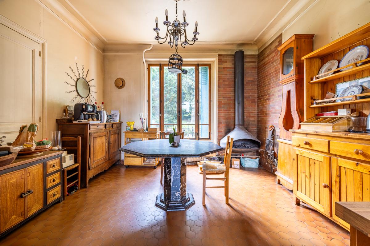 - Au RDC un séjour, une salle à manger, un dégagement accédant au jardin d'environ 400m² plein sud, une cuisine dinatoire avec office et un wc