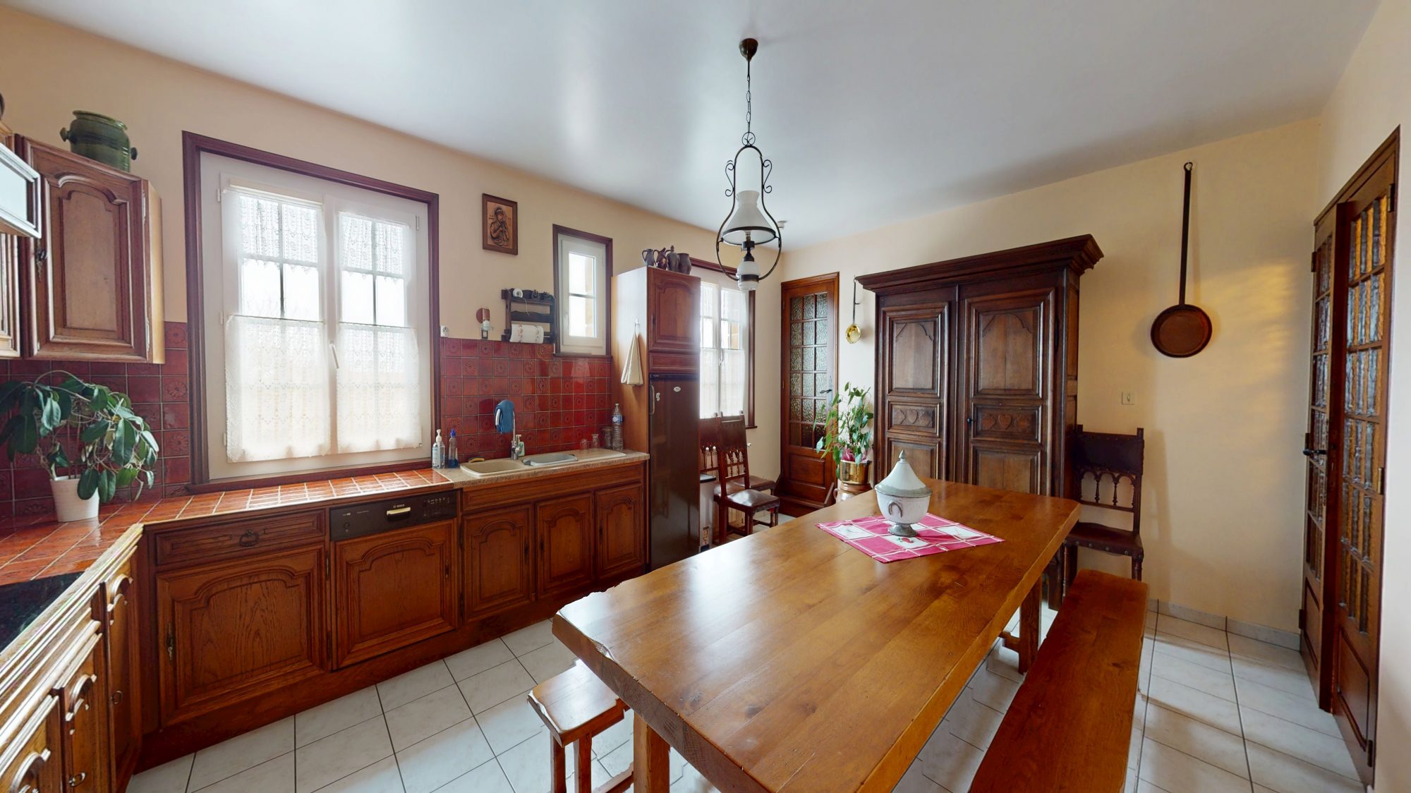 * à l'étage : palier, deux chambres, salle de bains avec WC, bureau, séjour et cuisine ;
