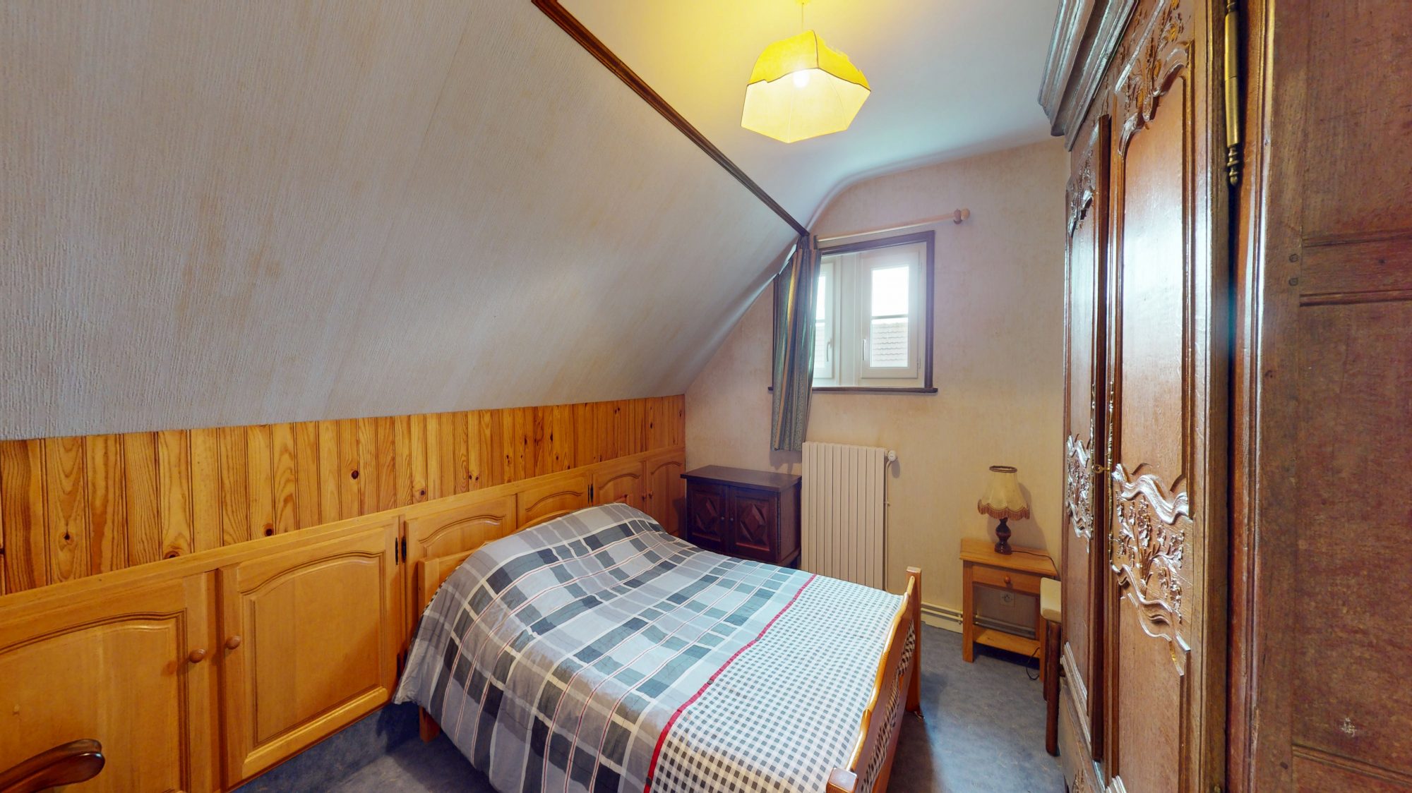 - d'un second logement à l'étage, comprenant : couloir, salle de bains avec WC, deux chambres, cuisine et débarras.