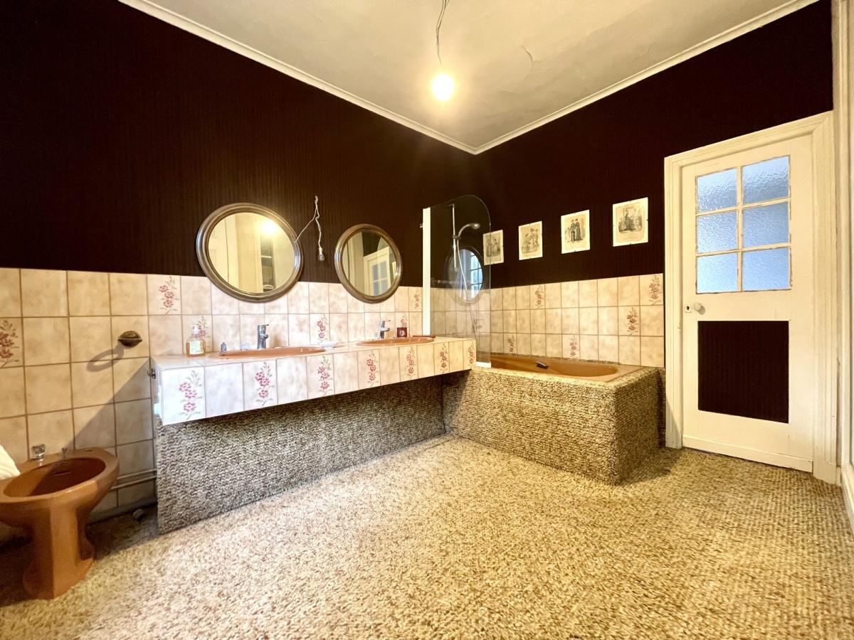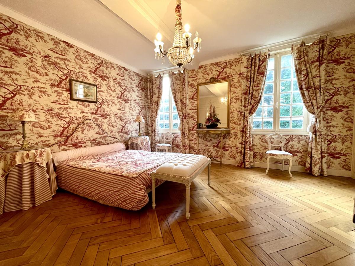 A l'étage un beau palier parqueté desservant cinq chambres, deux salle de bains , wc et une pièce à vivre avec coin cuisine avec un accès sur le jardin .