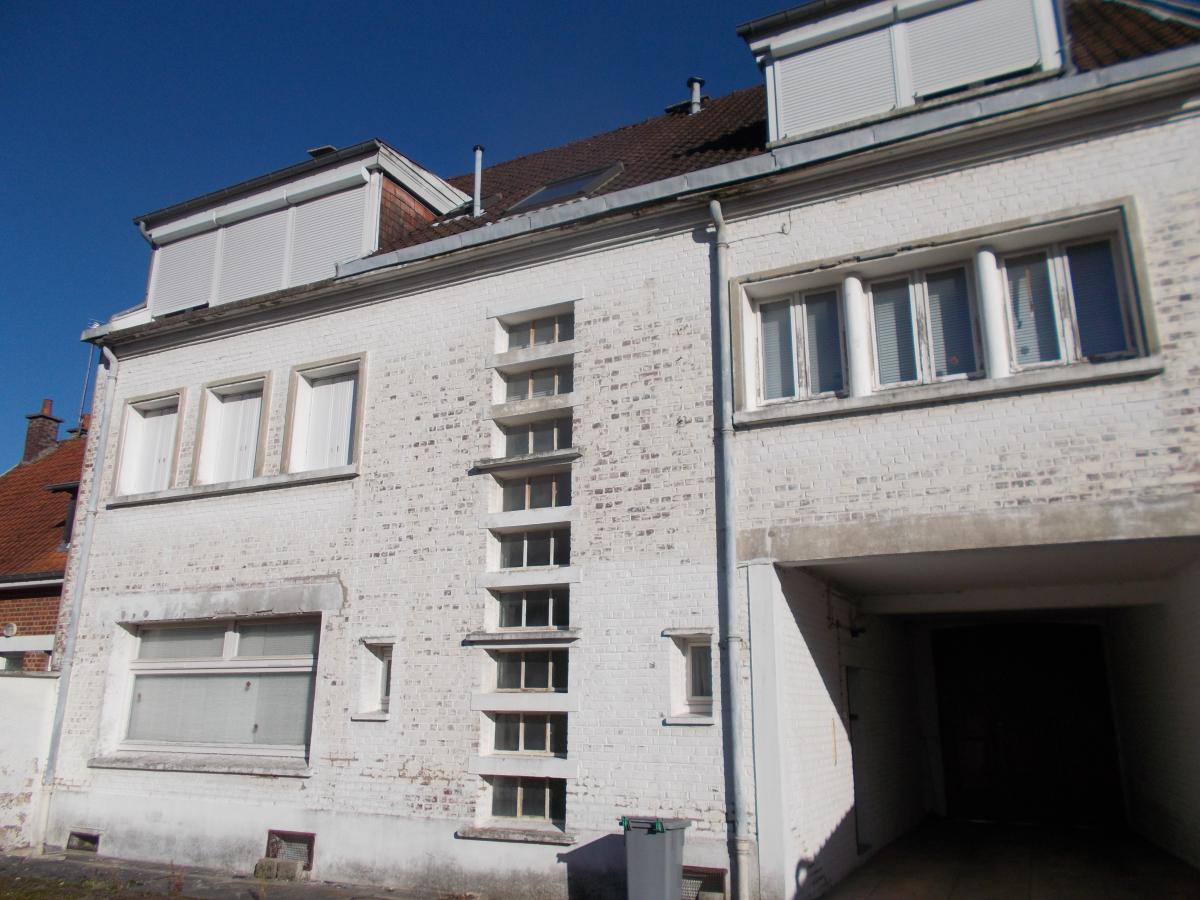 FREVENT Centre - Maison de bon volume avec entrée cochère et partie professionnelle comprenant au rez de chaussée : hall - salle d'attente - bureau - cabinet de soins - labo - wc couloir et cagibi- 1er étage : hall - cuisine - séjour>/salon cfb- 2 chambres -sdb - wc - - 2eme étage : cuisine aménagée - 2 chambres sdb - wc - grand séjour /salon avec cheminée. - cave compartimentée avec chaufferie - et 4 autres pièces - CC Fuel - production d'eau chaude par ballon - raccordé au tout à l'égout-cour et 3 garages l'ensemble 350m² env -