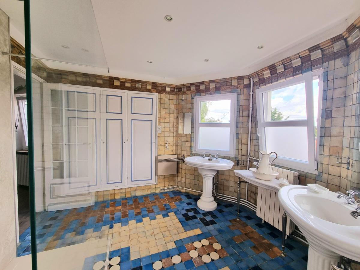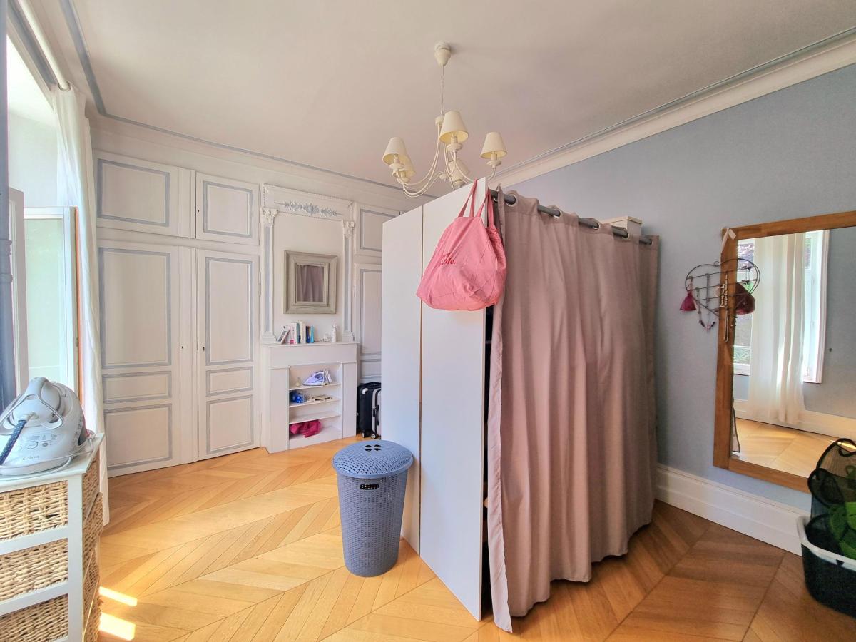 Au 1er étage : Un vaste palier offrant 5 chambres de 12 à 25 m², 3 salles de bains (dont une avec WC), une buanderie, une bibliothèque, deux dressings et un WC.