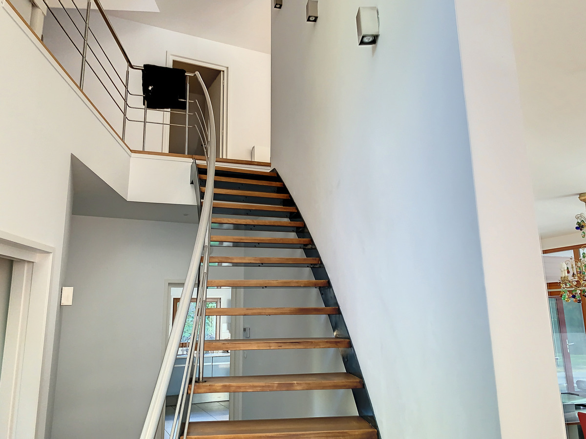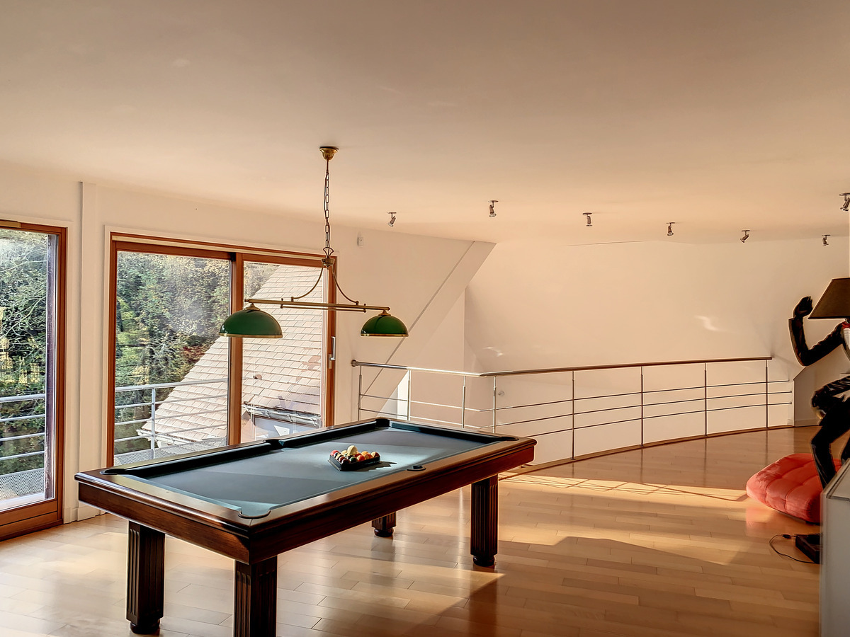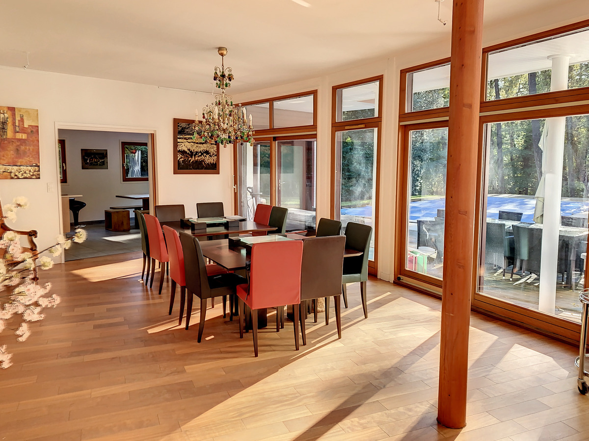 Cette villa d'architecte déploie ses 500 m2 habitables sur un vaste terrain arboré de 3090 m2. Elle est située dans une allée privée, promesse de tranquillité et d'intimité. Dès l'entrée, vous serez charmé par ses volumes , sa décoration épurée, ses nobles matériaux et son espace de vie spacieux baigné de lumière. Elle se compose d'un rez de chaussée, d'un étage et d'un sous-sol en partie habitable; un garage entièrement séparé possède un accès couvert vers la maison. Au rez de chaussée : Un vaste séjour/salon s'ouvre par ses larges baie vitrées sur le jardin agrémenté d'une piscine chauffée entourée d'une terrasse. Une cuisine "Siematic" parfaitement équipée et aménagée, prolongée d'une arrière-cuisine et d'une buanderie. Une salle à manger séparable de la cuisine par une porte coulissante en verre opaque. Pour compléter l'ensemble , une grande suite parentale sur le jardin plein sud et une bibliothèque/bureau. Chauffage au sol. Ascenseur intérieur vitré. A l'étage: 5 belles chambres, 3 salles de douche, une large mezzanine avec espace billard et bar donnant accès sur la terrasse,