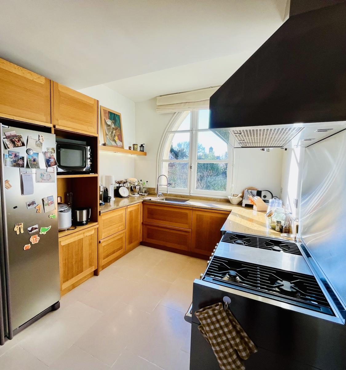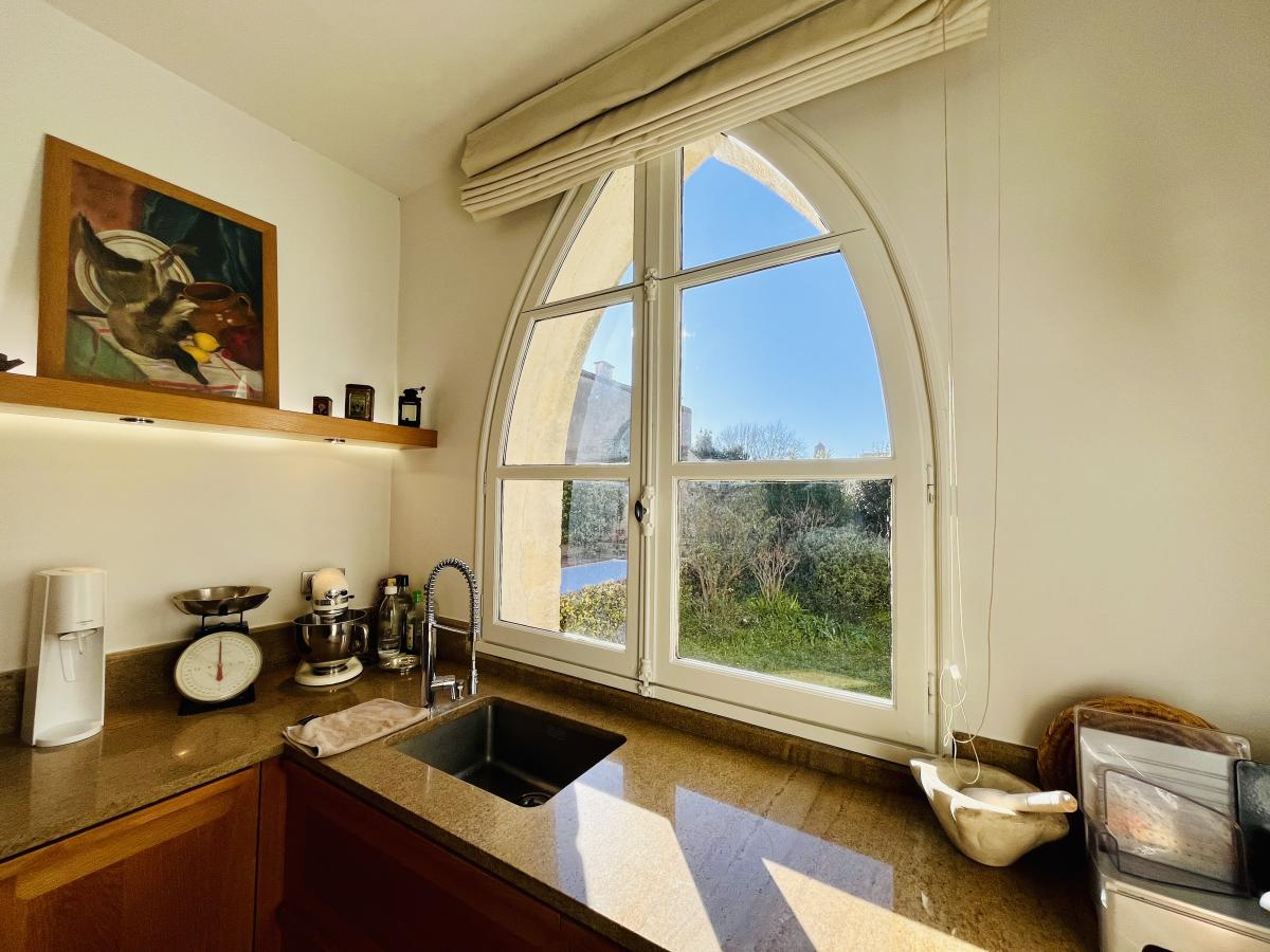 La propriété de 600m2 s'ouvre sur un jardin arboré avec piscine et différentes terrasses avec multiples expositions.