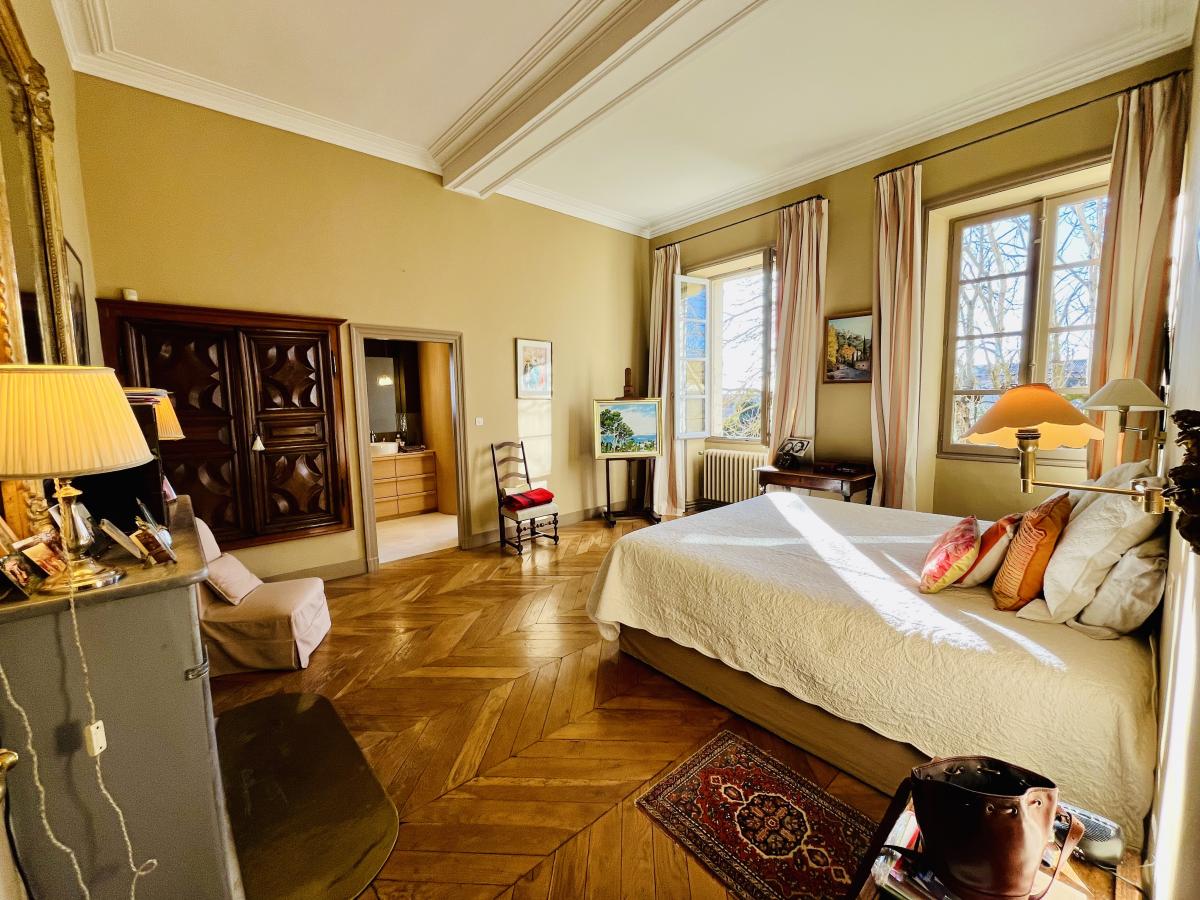 Au 1er étage, accessible par l'ascenseur ou par l'escalier, découvrez l’espace nuit avec trois belles chambres dont deux dotées de leurs salles d’eau et WC, une troisième salle de bains ainsi qu'un grand bureau. L'ascenseur privé dessert l’espace invité au 2ème étage, composé d'une chambre, un salon, une cuisine et d'une salle d'eau avec WC.