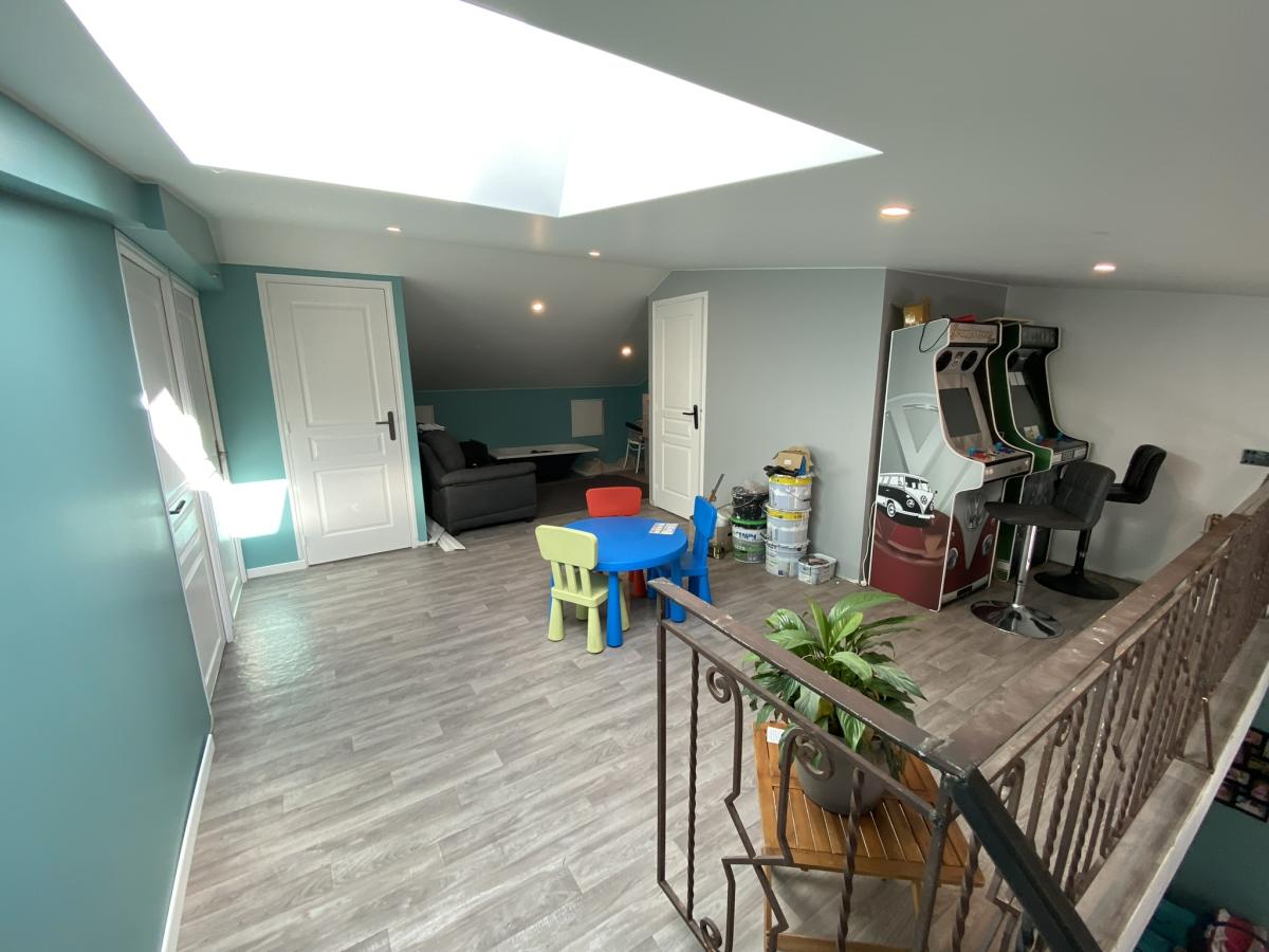 Elle vous offre au rez-de-chaussée : Entrée avec placard, une belle pièce à vivre de + 80m² (cuisine ouverte aménagée et équipée) avec insert bois, Quatre chambres (entre 12 et 14m²), une salle d'eau, un wc indépendant.