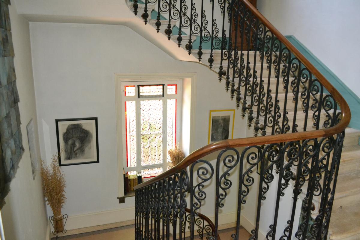 A vendre à Aubenas, Ardèche (07) - Une grande bâtisse en pierre avec énormément de cachet - Cet maison de maître a été construite en 1892 - Le bien se trouve à deux à pieds du centre d'Aubenas et des commerces - Le parc, bien arboré, est entièrement clos - Surface habitable : 360 m² environ - Rez-de-chaussée bas : Garage 31 m², caves de 13 m², 46 m², 10 m² et 20 m² - Rez-de-chaussée : Hall d'entrée avec montée d'escaliers 24 m², salon 35 m², salle à manger 27 m², Véranda 10 m², Salon TV 16 m², Cuisine 15 m² et WC indépendant - Etage : 3 chambres de 28 m²; 22 m² et 22 m², buanderie 20 m² et Salle d'eau avec WC 4,50 m² - Etage : 4 chambres 21 m², 18 m², 14 m² et 17 m² (dont 2 avec salle d'eau privative), Bibliothèque 11 m², salle de bains avec WC 4,70 m², salle d'eau avec WC 6,70 m²
