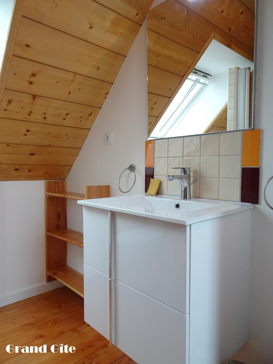 o Etage : palier, deux chambres et une salle de douche avec WC.