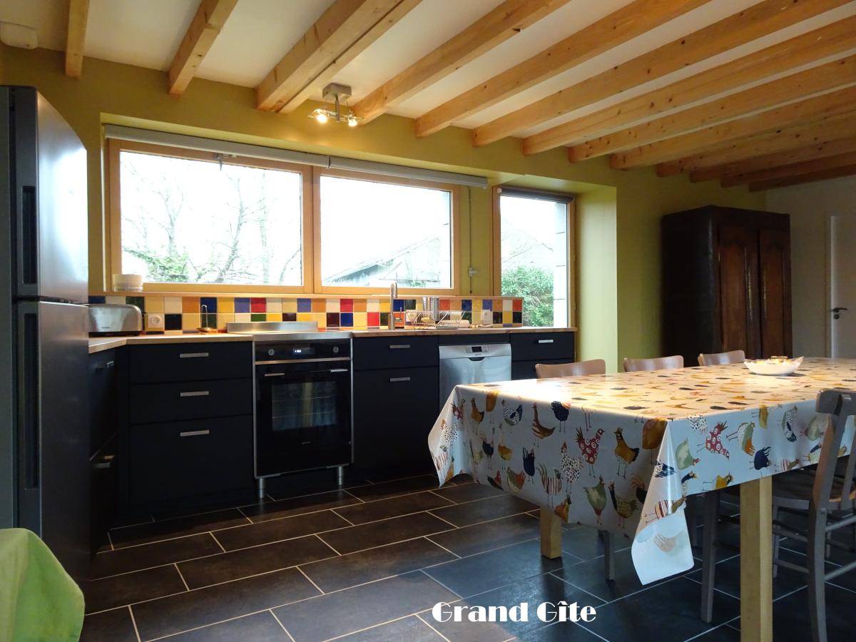 o RDC : salon/séjour avec poêle à granulés et une cuisine.