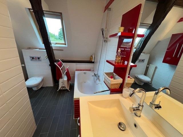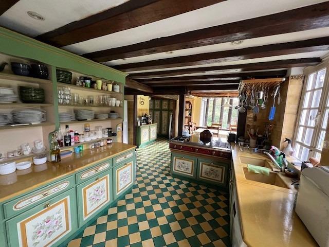 Une propriété comprenant : 1°) Une maison normande comprenant : - Au rez-de-chaussée : salle à manger, cuisine aménagée et équipée, chauffage central fuel, arrière-cuisine, buanderie, salon-salle à manger avec cheminée et poêle à bois, autre grand salon avec cheminée pierre, chambre, wc, salle d’eau. - A l’étage : 1ère partie : palier, couloir, salle de bains avec wc, salle d’eau et wc, 4 chambres. 2ème partie : une chambre, chambre avec salle d’eau, autre chambre avec salle de bains douche et wc et baignoire. 2°) Dépendance à usage de garage, atelier, chaufferie fuel, local piscine avec à l’étage salle d’eau et wc, 2 chambres, placards. 3°) Piscine 10x5 chauffée. 4°) Une maisonnette comprenant : Terrasse séjour avec cheminée Etage : salle de bains et wc. Dépendance box à chevaux ou atelier. L’ensemble sur 03ha.33a.22ca.Les informations sur les risques auxquels ce bien est exposé sont disponibles sur le site Géorisques : www. georisques. gouv. frConsultez nos tarifs : https://www.rouault-orbec.notaires.fr/tarif-honoraires.htmlMontant maximum des honoraires pratiqués par l'Office.