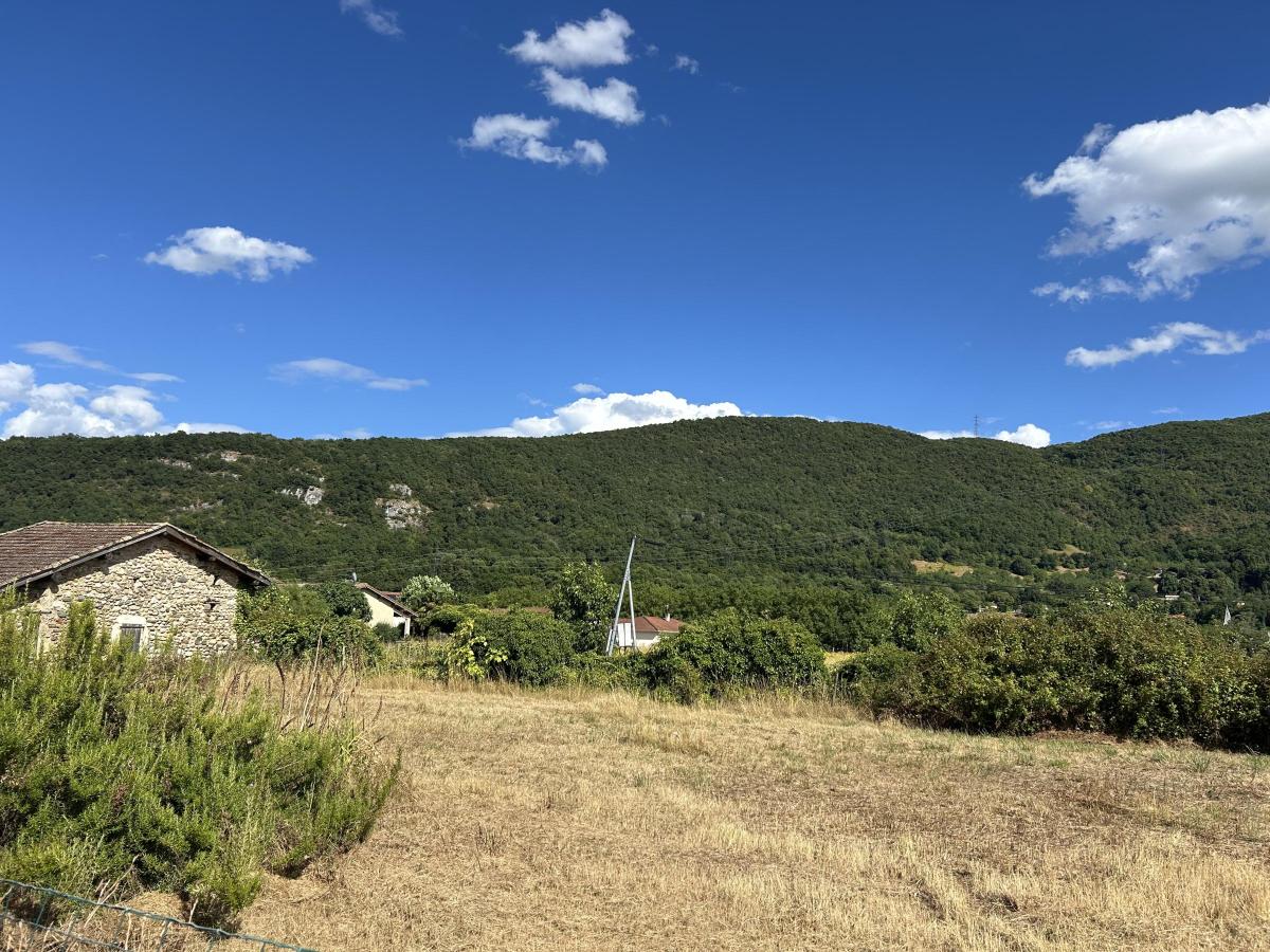 La maison est située dans un petit village calme, sans aucun vis-à-vis, avec parcelle de jardin de 3.300m2 et vue sur la montagne.