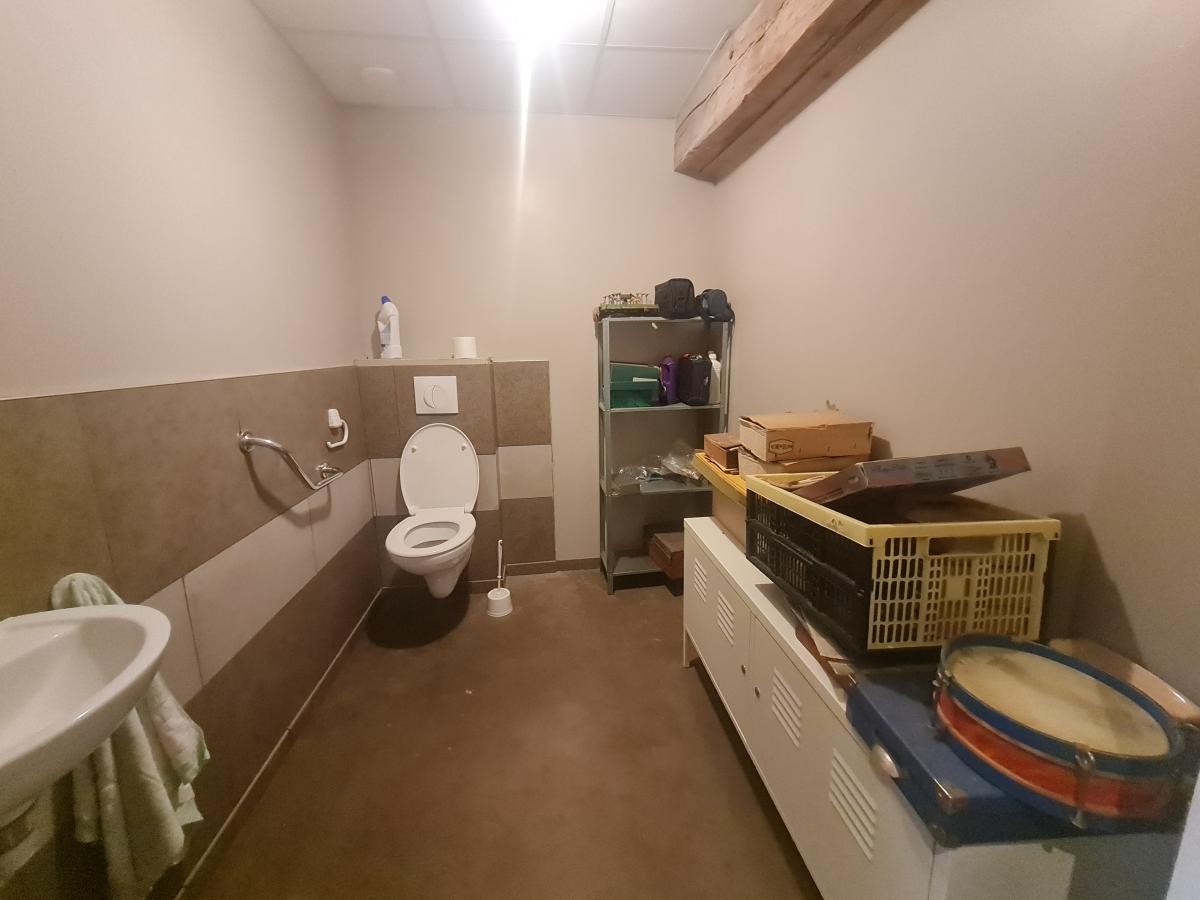 / au rdc: pièce d'exposition, WC avec lave-main, placard (avec centrale d'aspiration), arrière-cuisine,