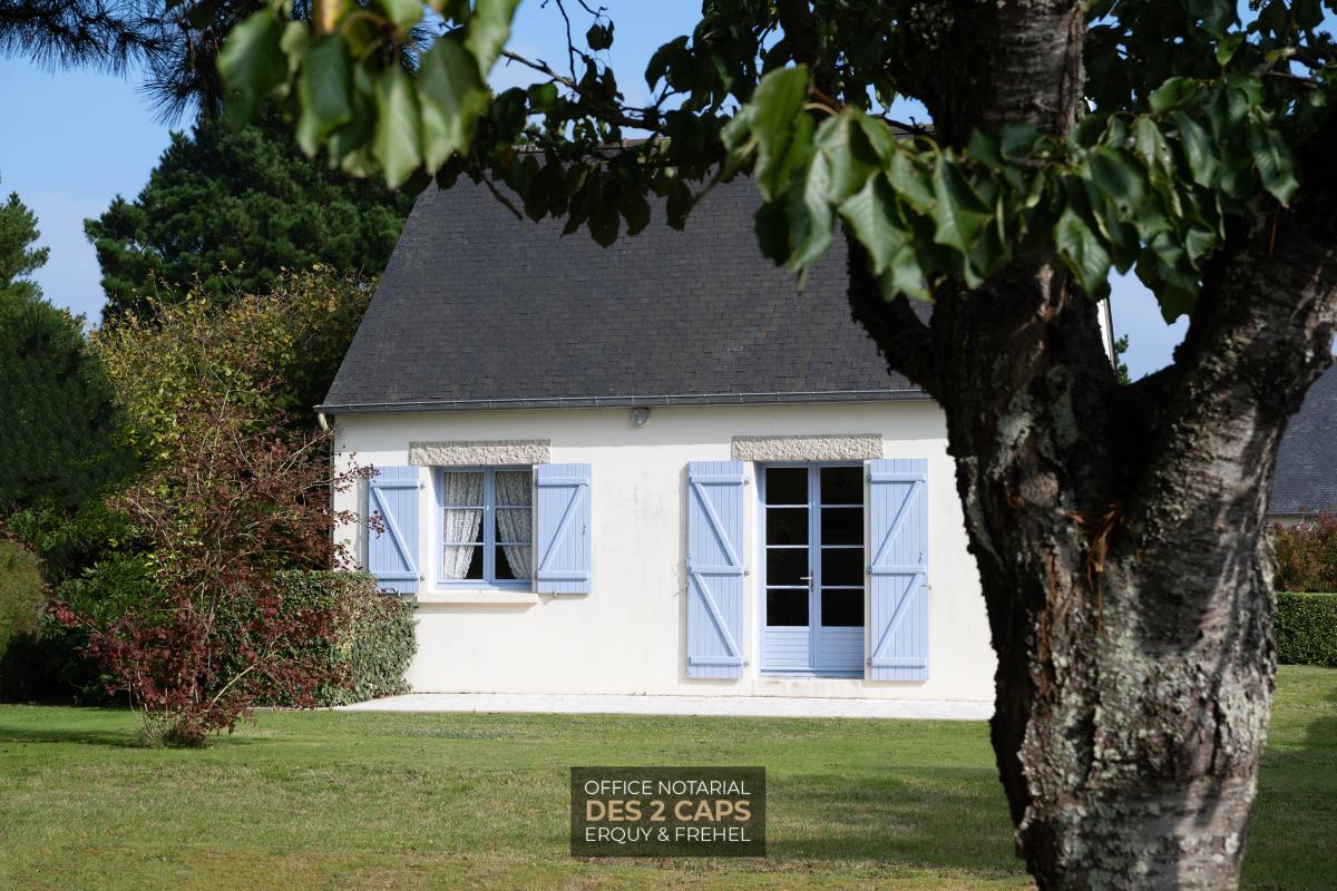 Cette maison d'habitation située proche de la station balnéaire de Sables d'Or les Pins et de la plage est composée d'une entrée avec placard desservant un séjour, d'une cuisine avec une pièce débarras, d'une chambre, d'une salle d'eau et de W.C. A l'étage, un grenier aménageable. Le terrain de 1270 m² est clos et arboré. Quartier calme proche de la plage.