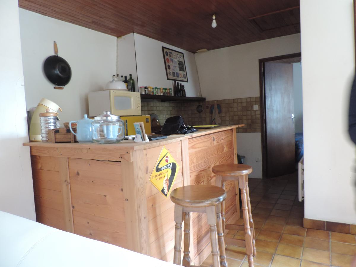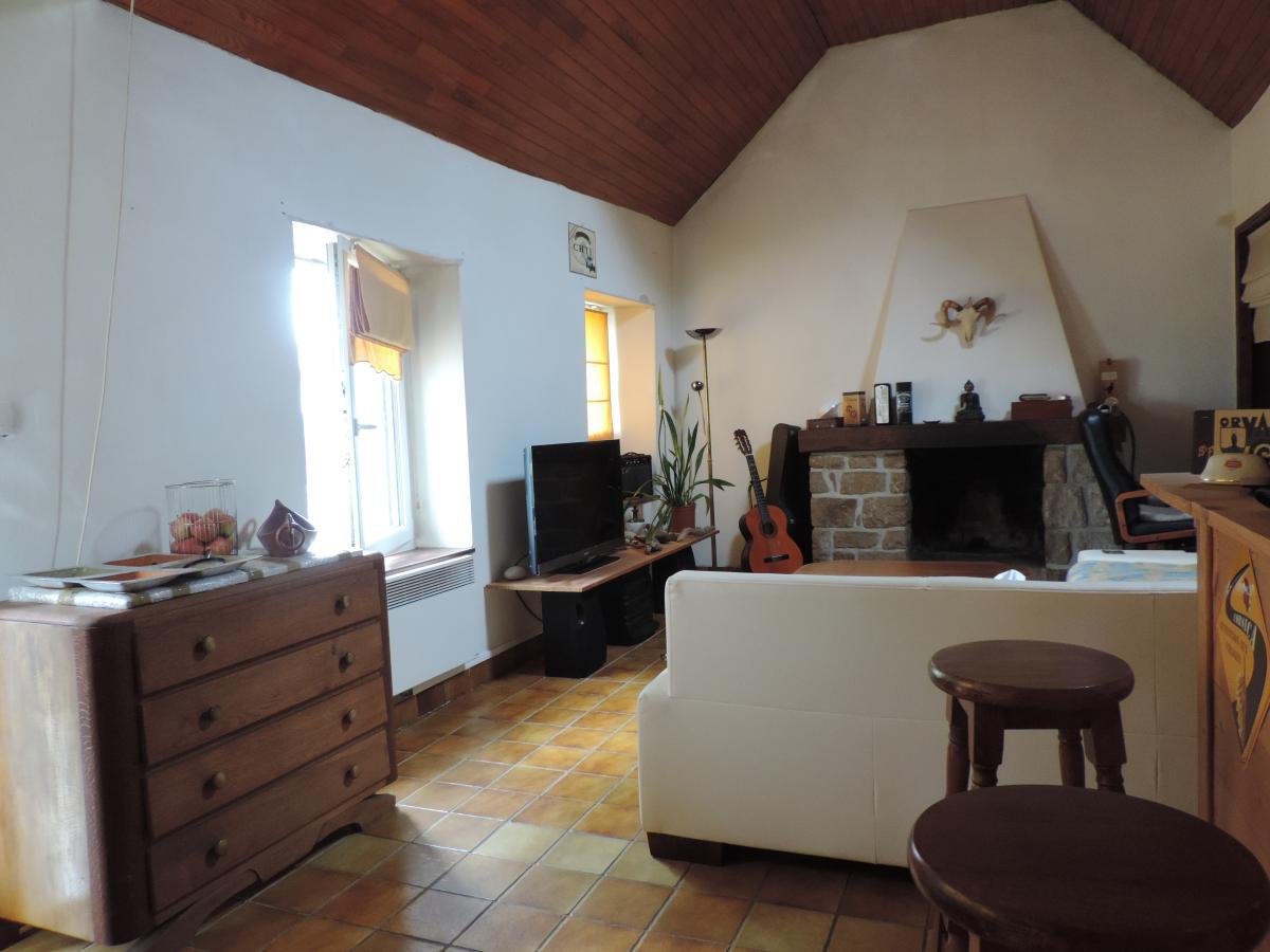 Dans le bourg, maison en pierre (AVEC LOCATAIRE) comprenant une pièce de vie avec une cheminée (Belle hauteur sous plafond), une cuisine ouverte, une chambre et une salle de bains avec w.c.
