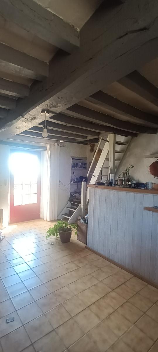 CHALLAIN LA POTHERIE : Charmante maison en pierre offrant un coin cuisine sur salon/séjour (cheminée + poêle à bois), à l'étage une chambre, salle de bains, WC.